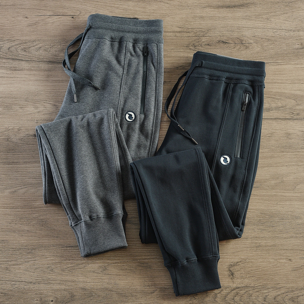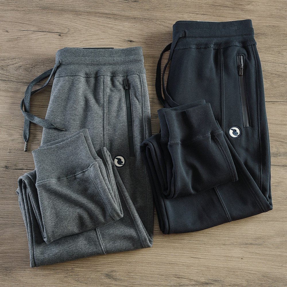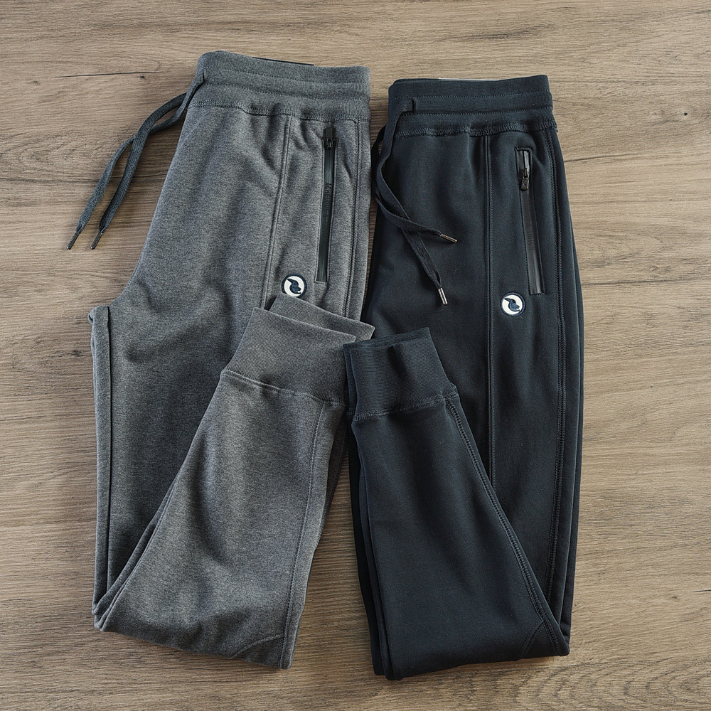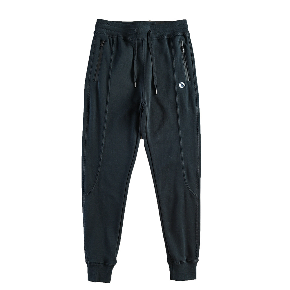 春秋新款刺绣拉链口袋修身束脚卫裤男牛肚毛圈棉收口运动裤男裤子