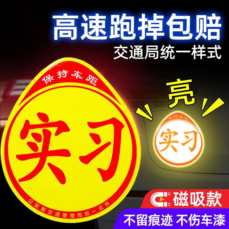 磁吸实习车贴新手磁性标志强反光贴粘贴吸盘式实习期女司机搞笑
