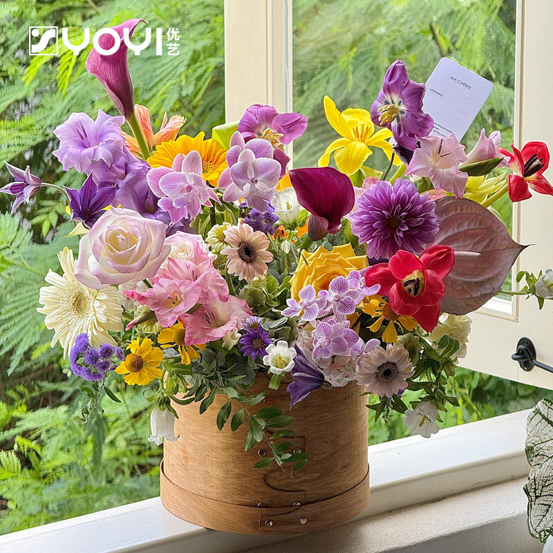 优艺 韩系简约原木色礼盒花盒鲜花花艺DIY插花盒礼品包装盒