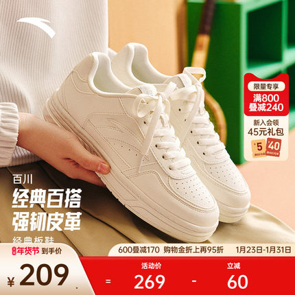 安踏百川丨经典白色低帮板鞋女鞋冬季百搭滑板鞋小白鞋122538010