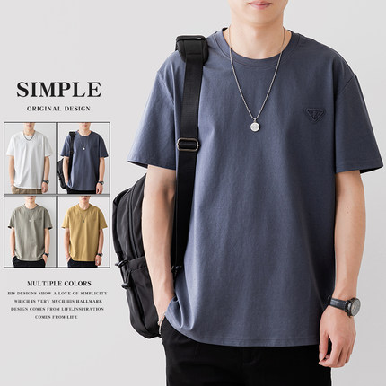 纯色短袖T恤男士夏季圆领宽松打底衫日系休闲男上衣半袖体恤男款