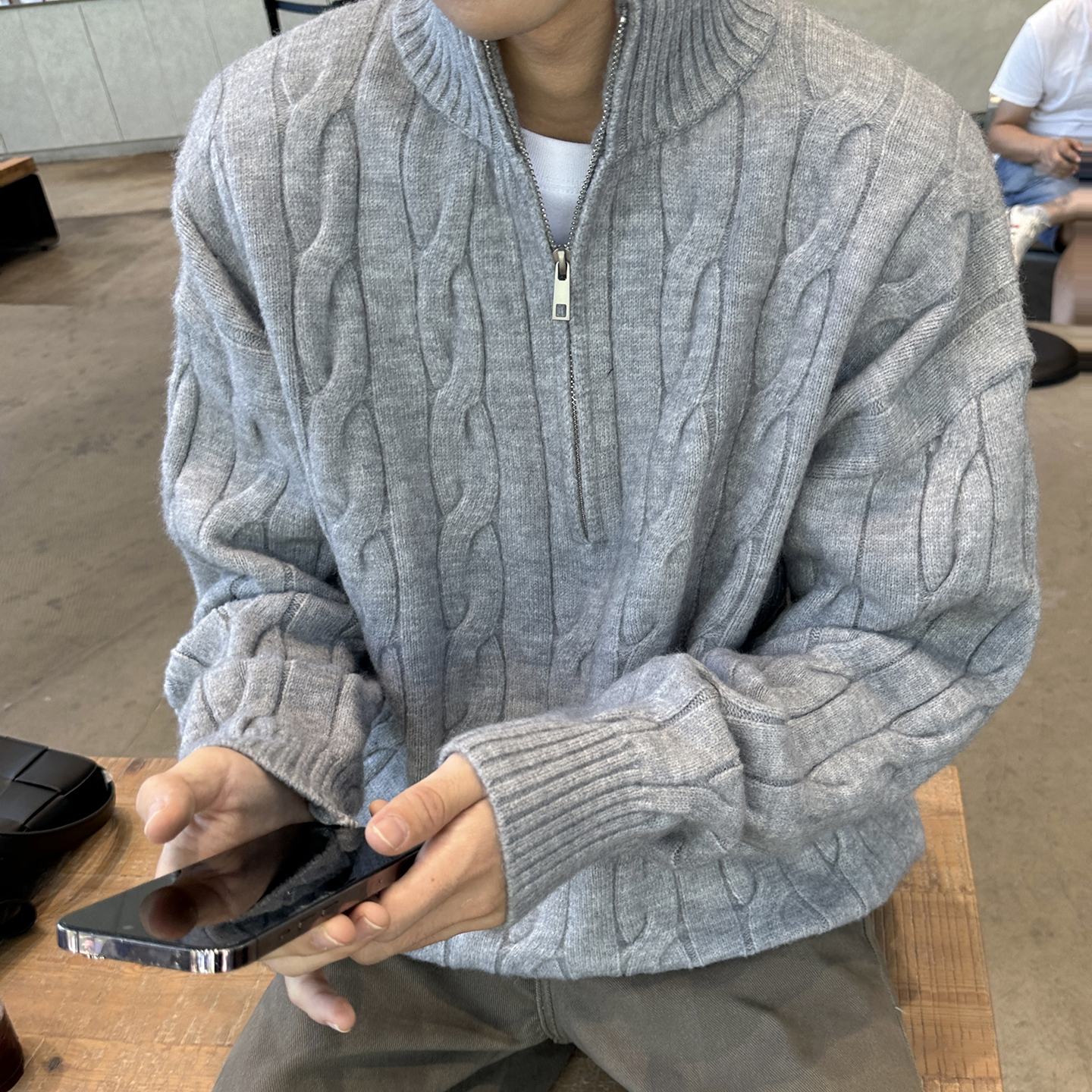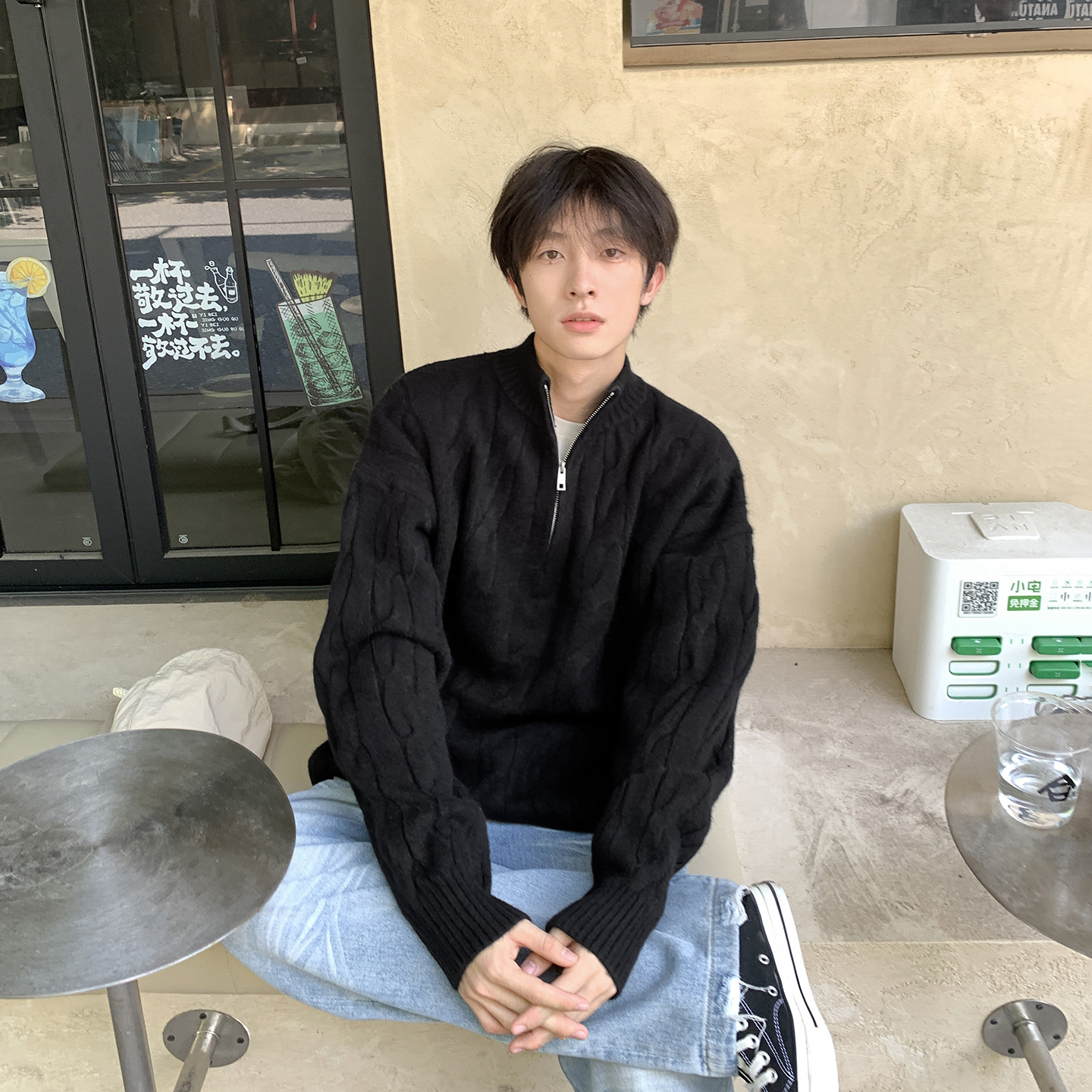港仔文艺男 半拉链麻花毛衣男秋冬季美式复古半高领针织衫外套