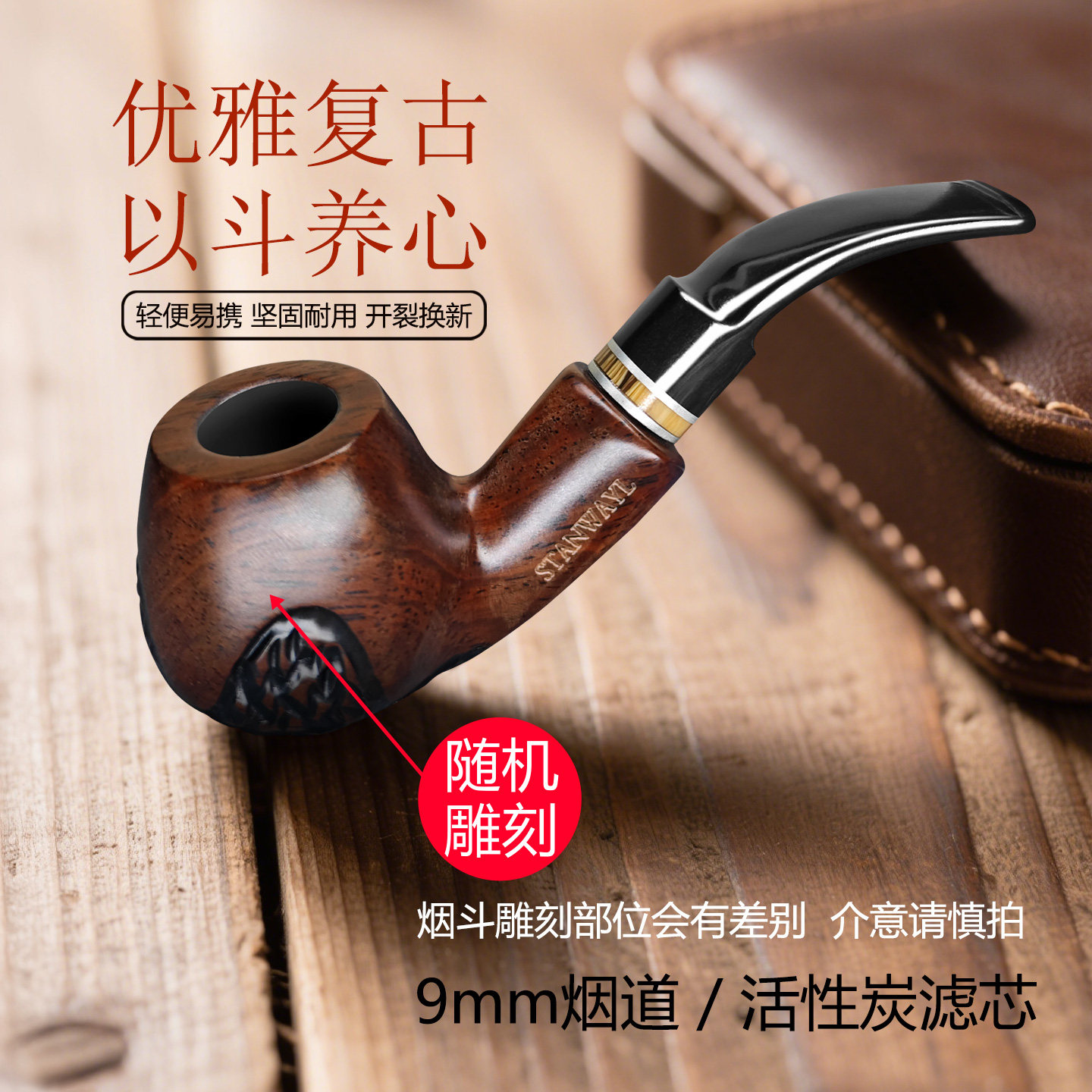 英国进口随身斗实木烟斗男士手工石楠木老式旱烟锅过滤斗直式烟具