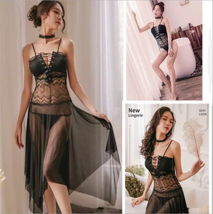 80-160斤加大码性感睡衣可爱新款诱惑网红吊带系带深V连体式内衣