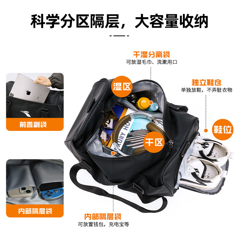 361度休闲包旅行包男士简约大容量多功能单肩包斜挎健身游泳包