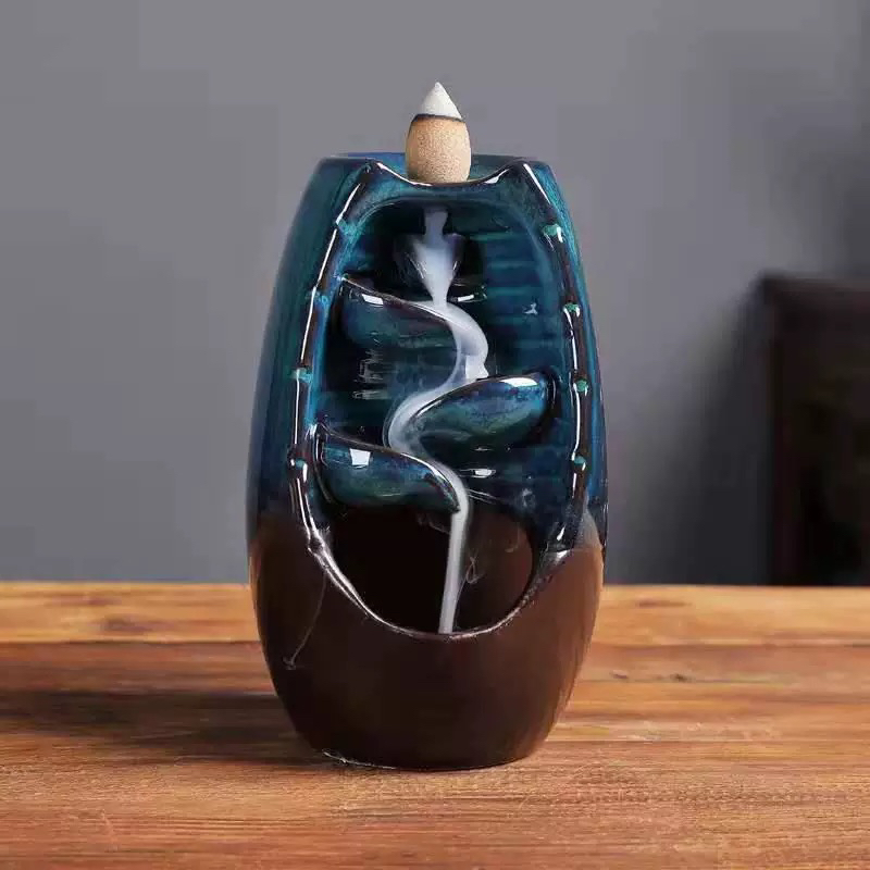 倒流香炉摆件创意陶瓷家用左右逢源室内香薰炉高山流水家居檀香熏