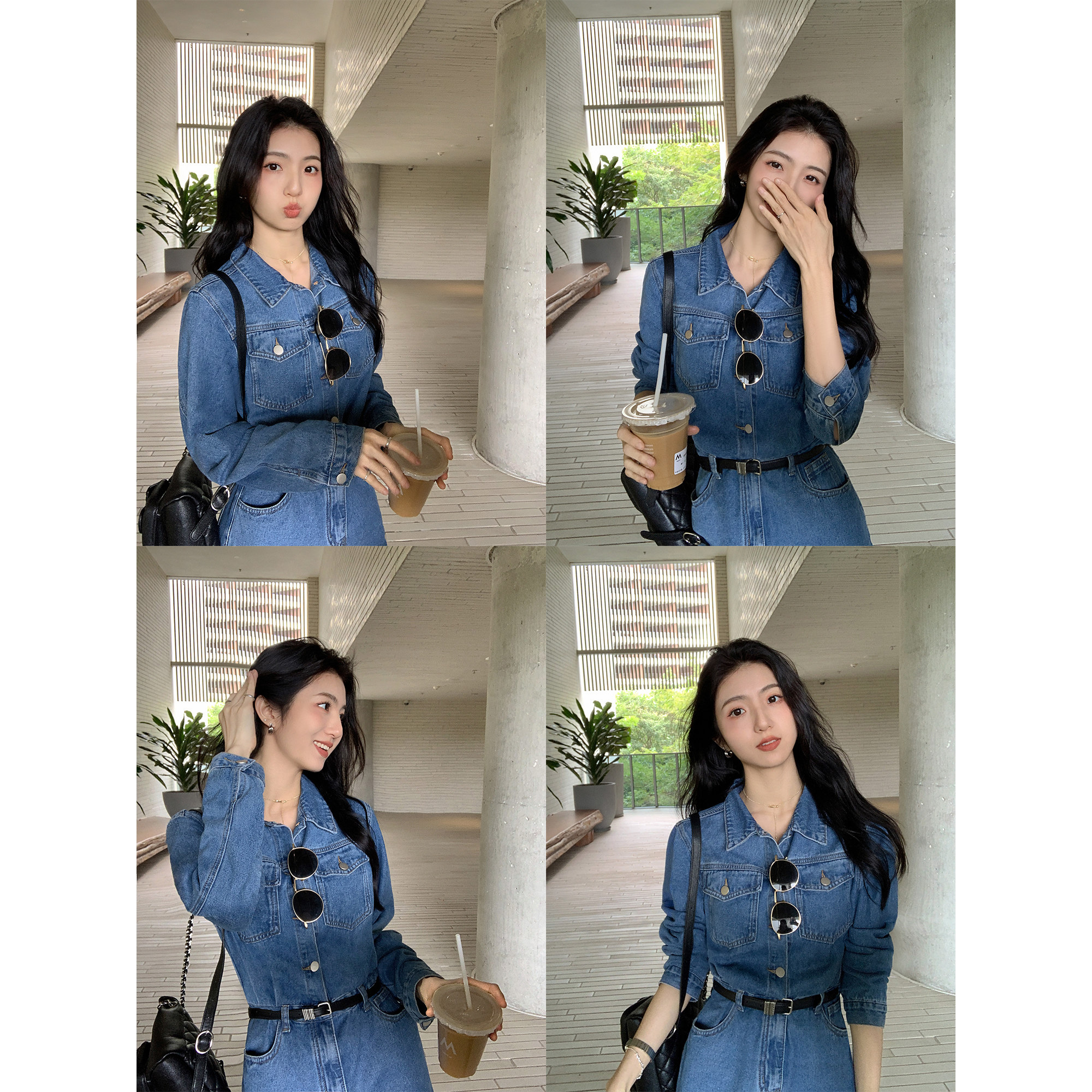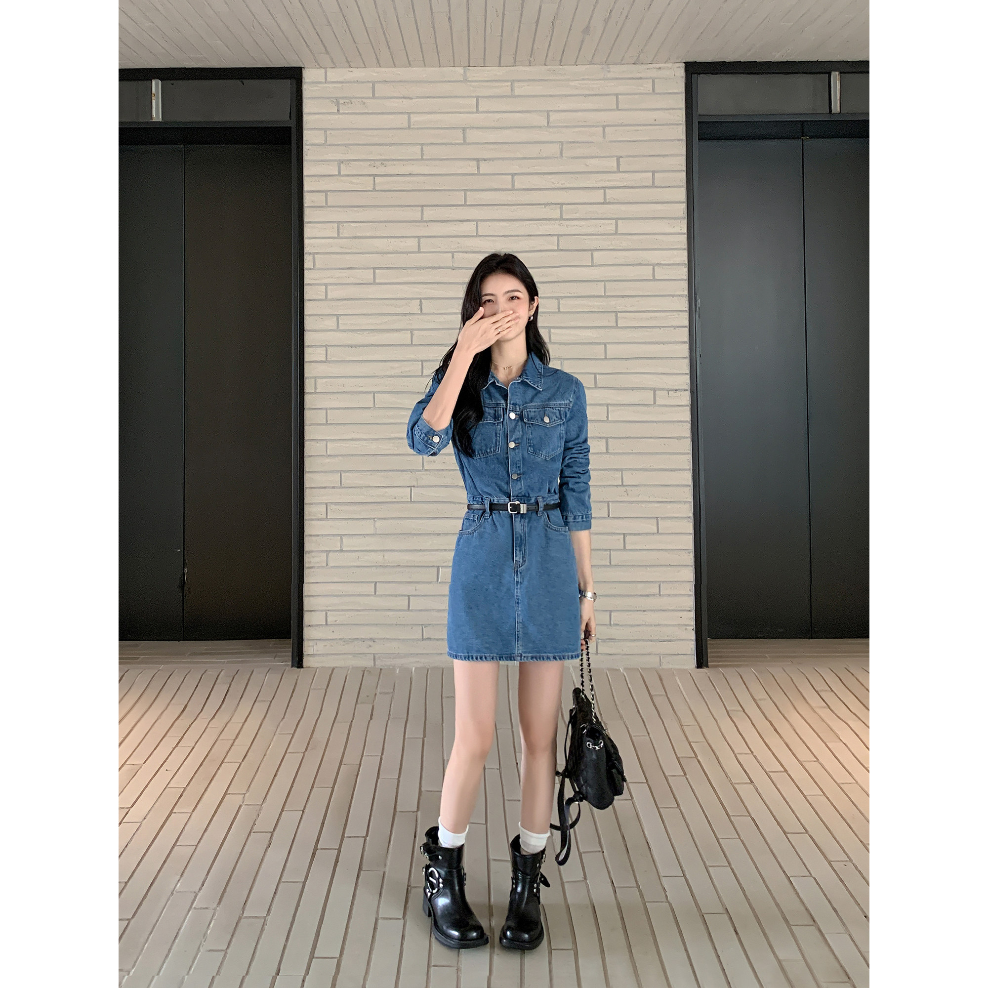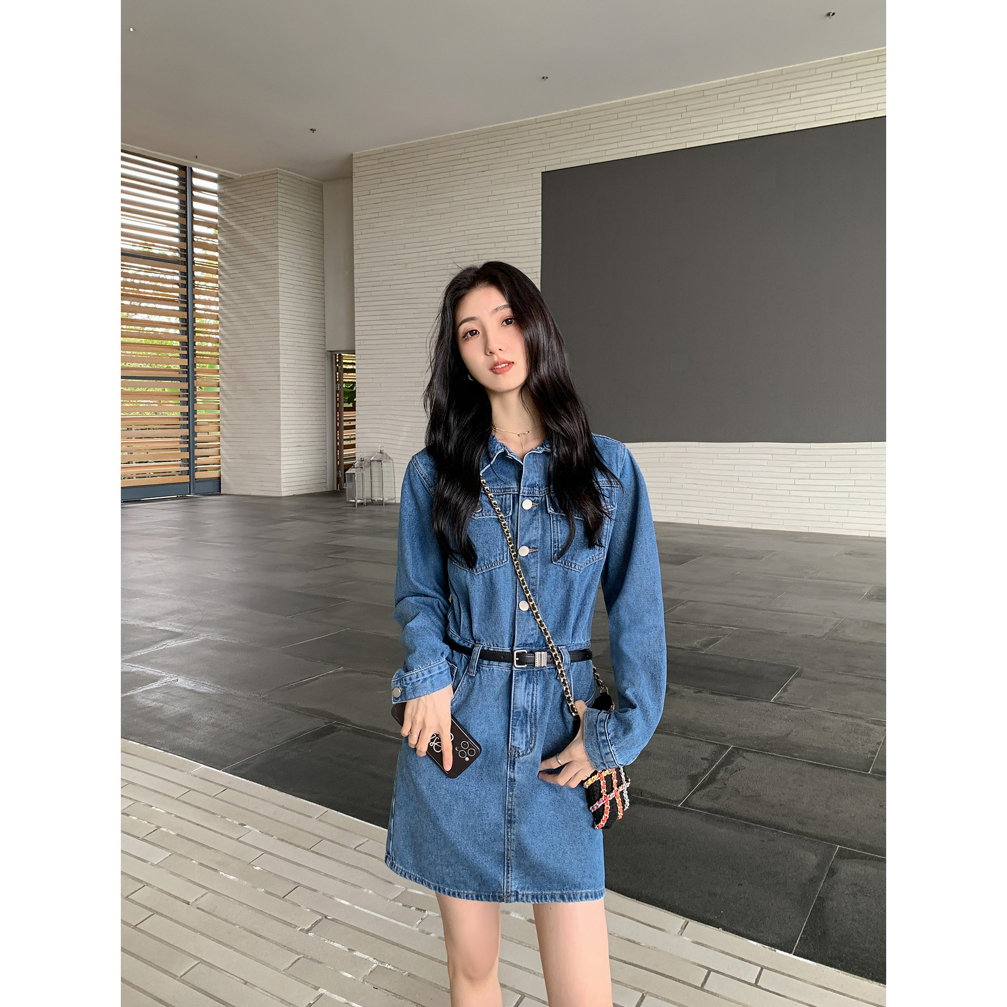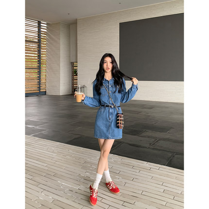 复古翻领牛仔连衣短裙