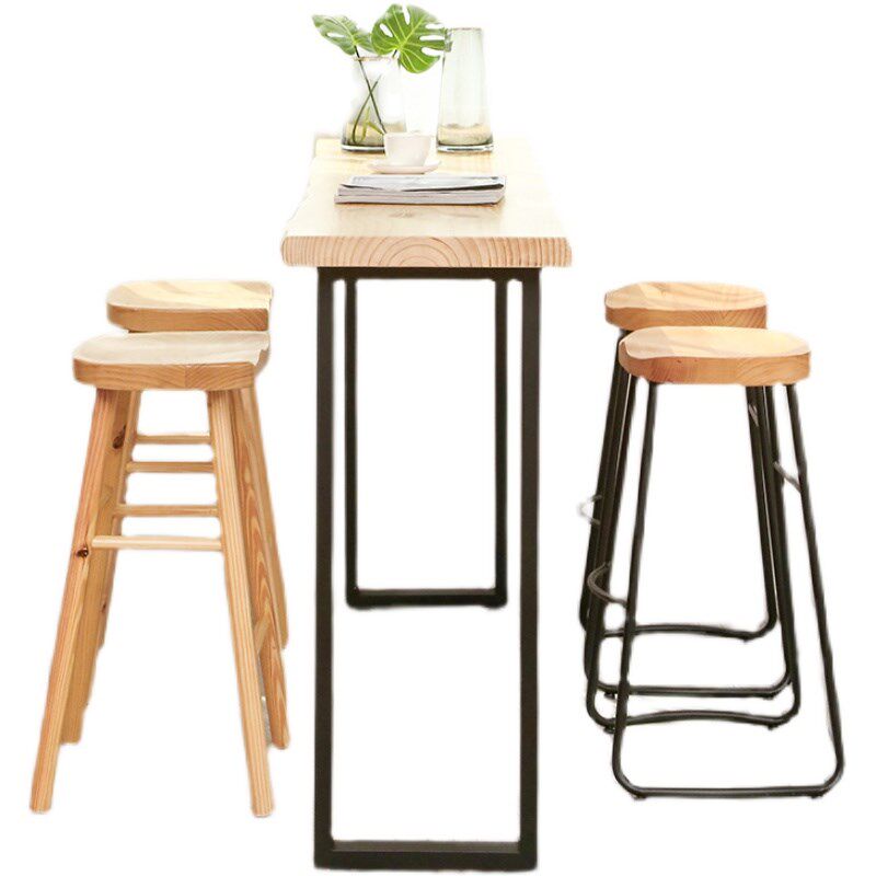 高桌子吧台桌子实木桌面简约长条桌奶茶店酒吧高脚桌椅组合商用