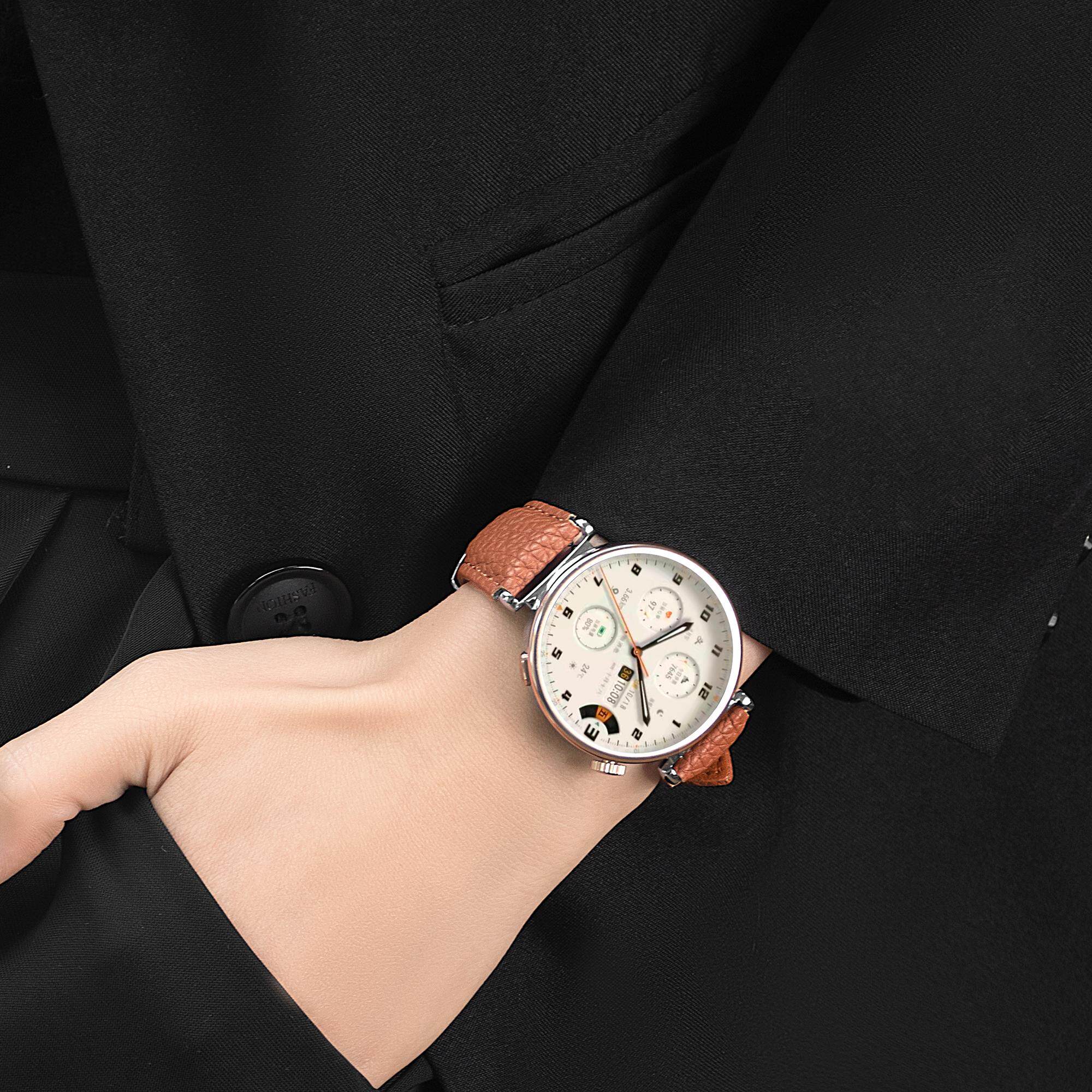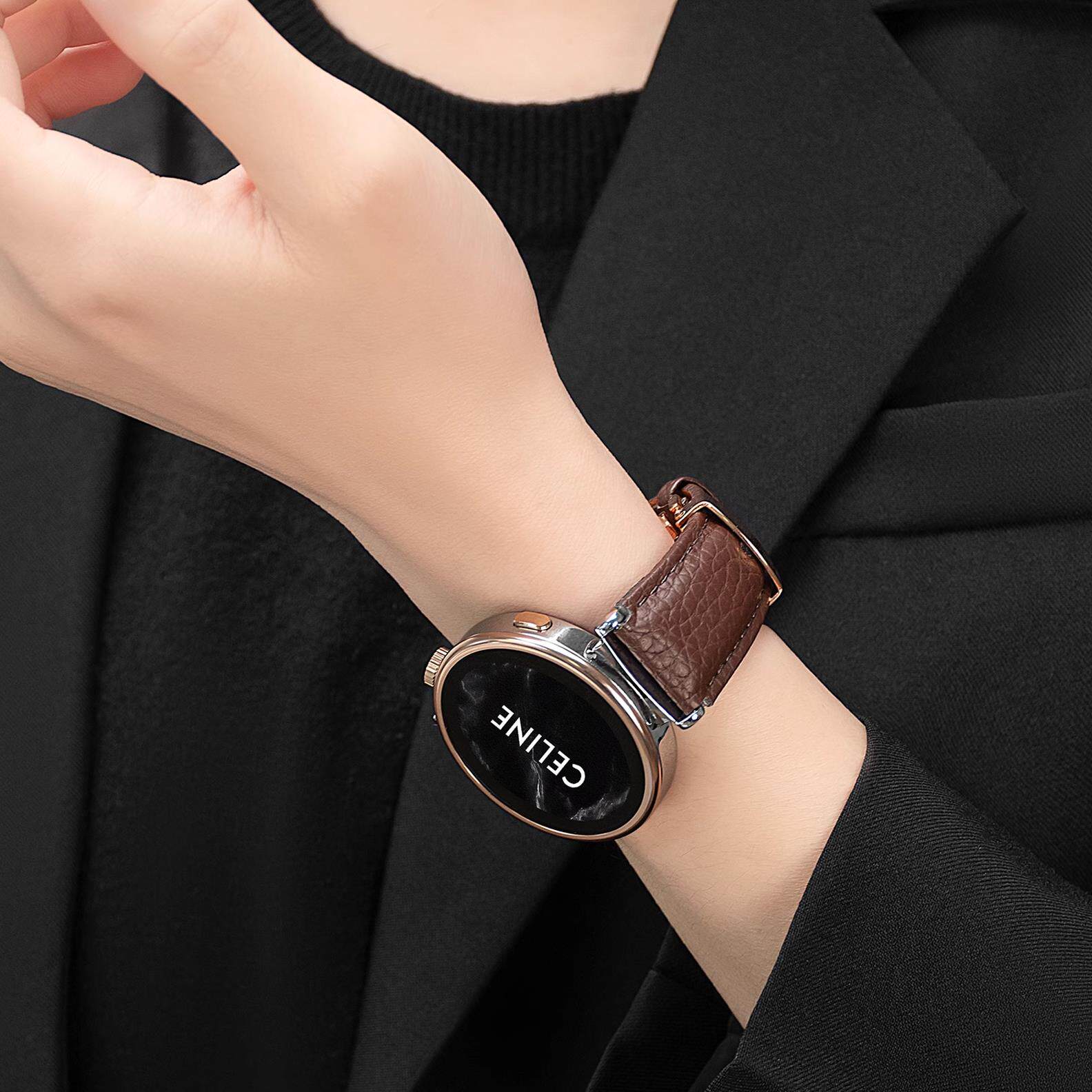 适用华为gt5表带真皮荔枝纹41mm新款蝴蝶扣手表腕带女款watch4pro
