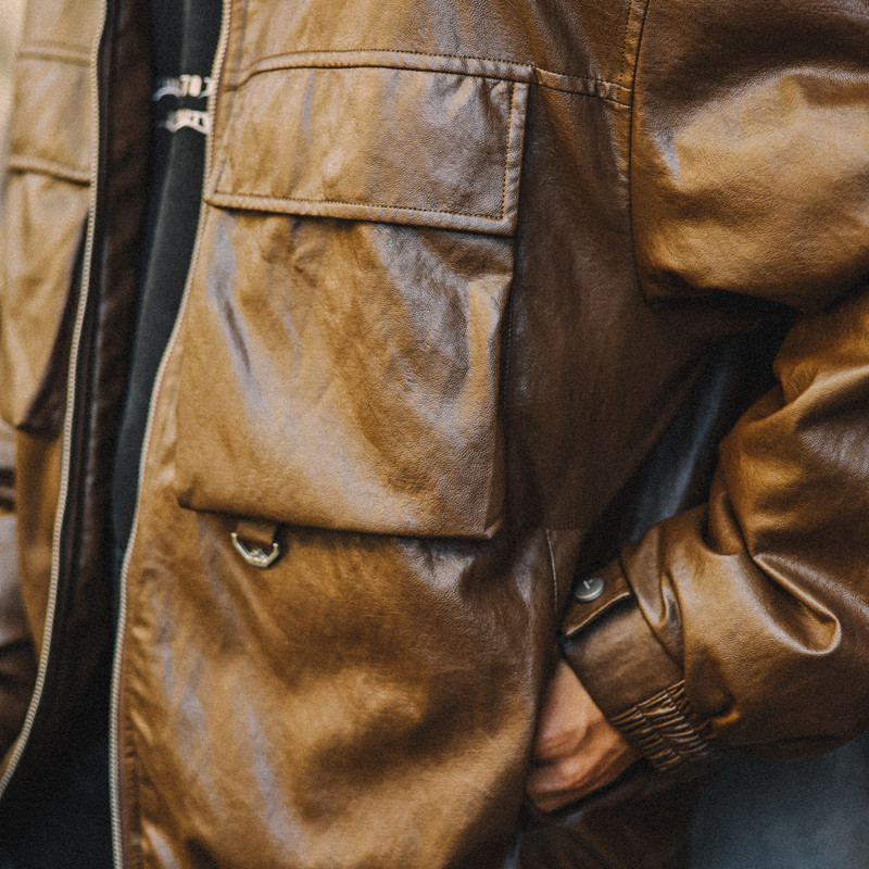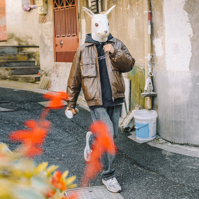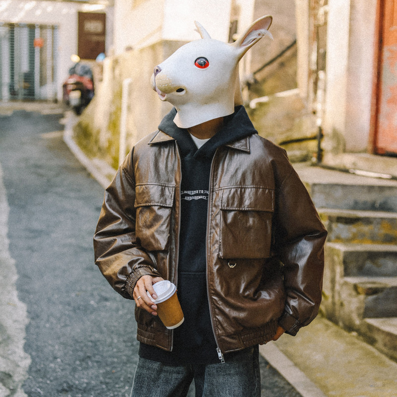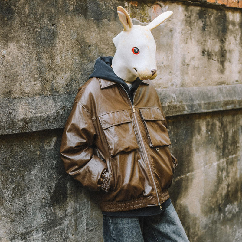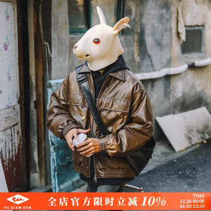 兔先森日系复古美拉德翻领羽绒服男工装90白鸭绒机车皮衣夹克外套