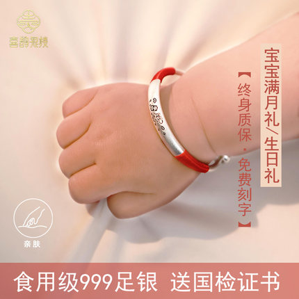 宝宝银手镯999纯银正品周岁满月礼物男女新生儿蛇年足银饰镯子