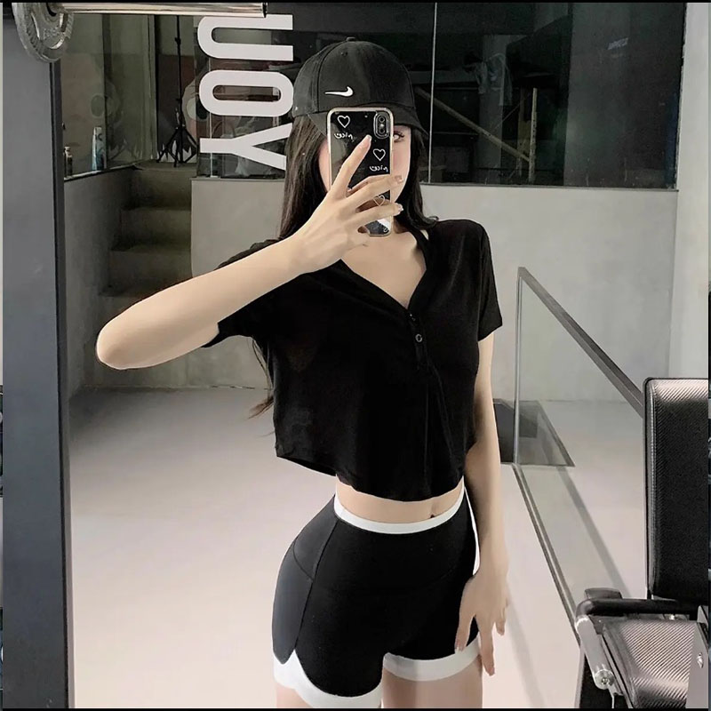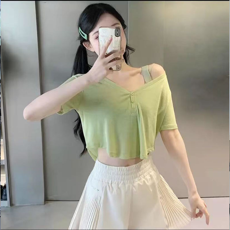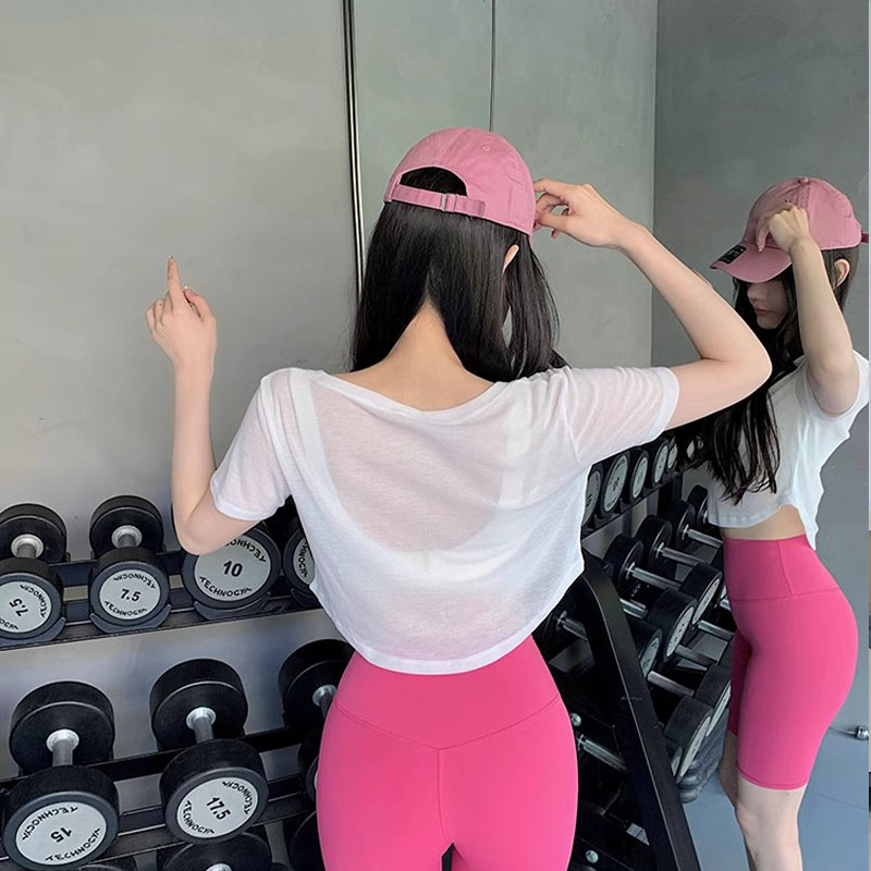 夏季瑜伽服女运动短袖T恤速干透气专业跑步普拉提训练健身上衣潮