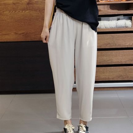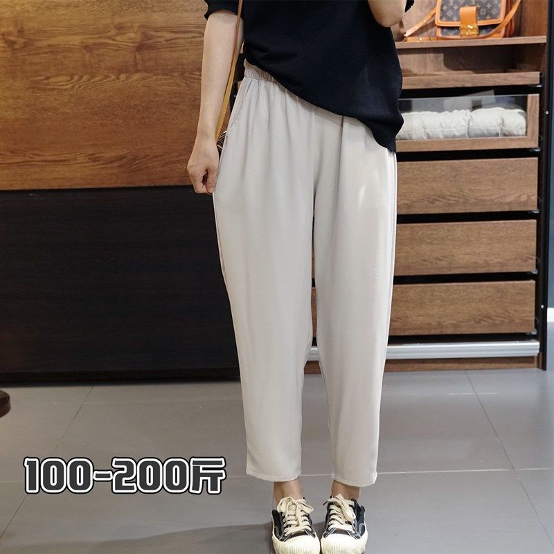 夏季200斤萝卜哈伦裤女雪纺裤子大码女裤九分胖mm不易皱休闲裤子