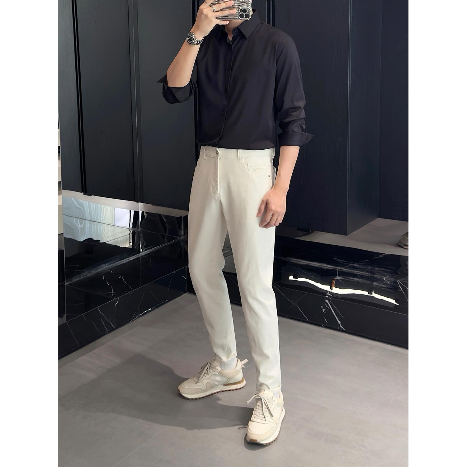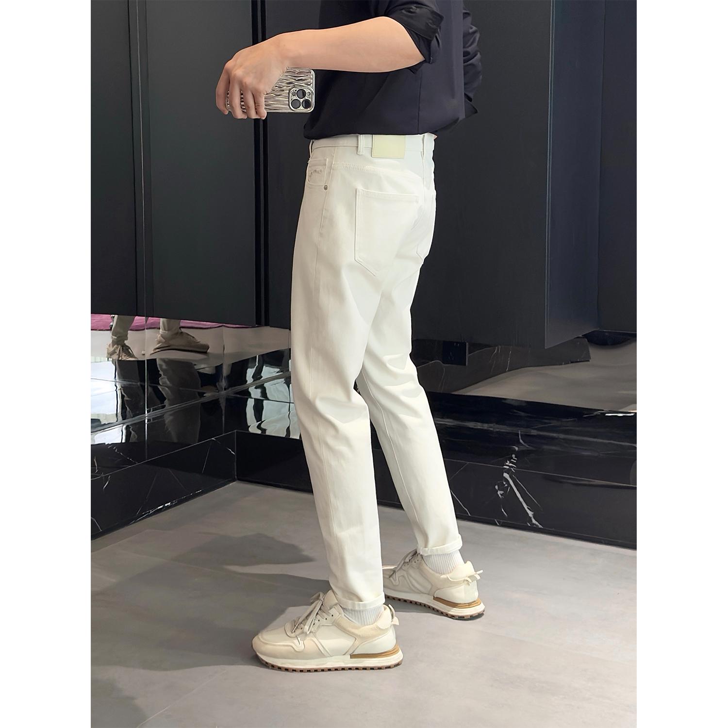 里奈男装春季新款男白色牛仔裤百搭休闲长裤简约修身小脚纯色裤子