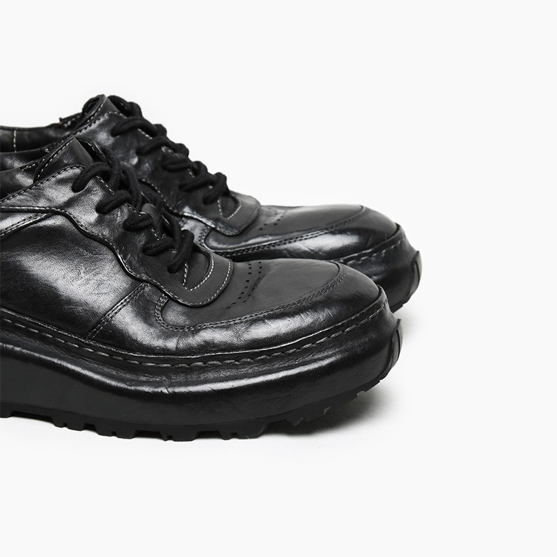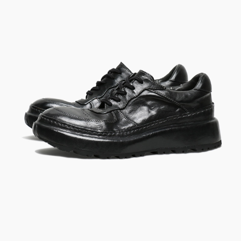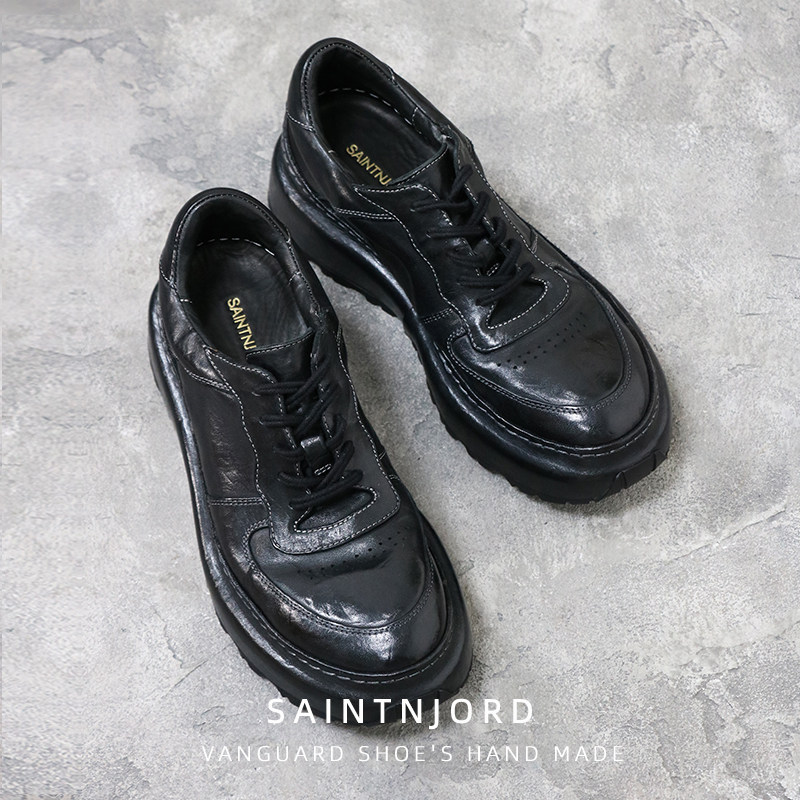 优100高端马皮手工鞋休闲男鞋增高厚底板鞋小黑鞋复古水洗老爹鞋