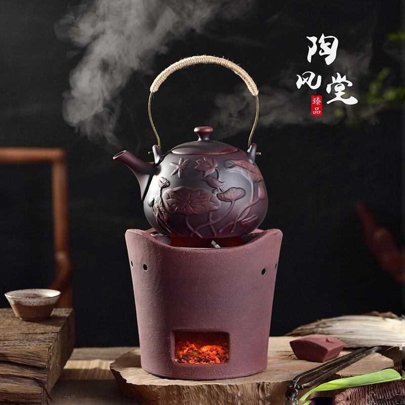 功夫陶壶手工紫砂壶烧茶煮水提梁壶电陶壶木炭小碳炉煮茶器煮茶壶