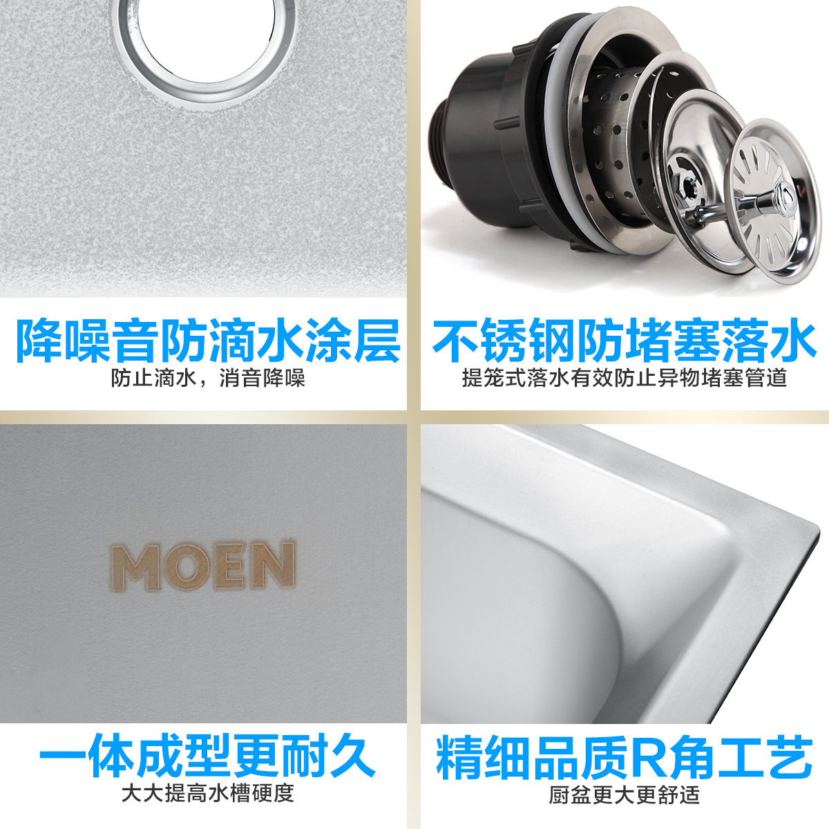 摩恩专柜款水槽304不锈钢790*490mm洗菜盆50下水厨盆套餐27119M01
