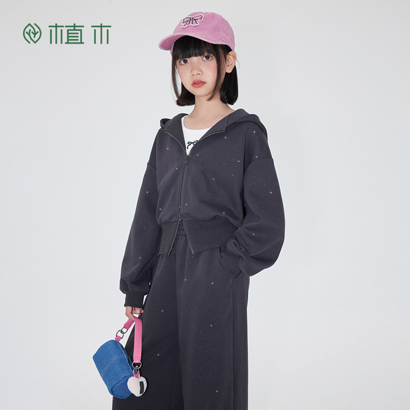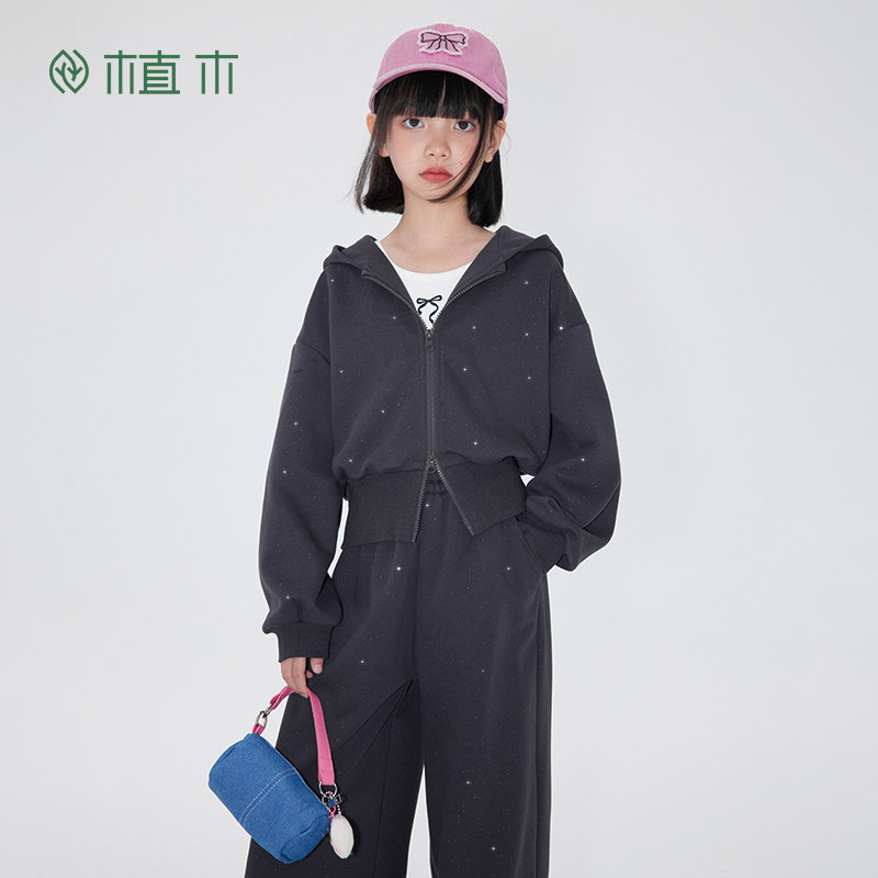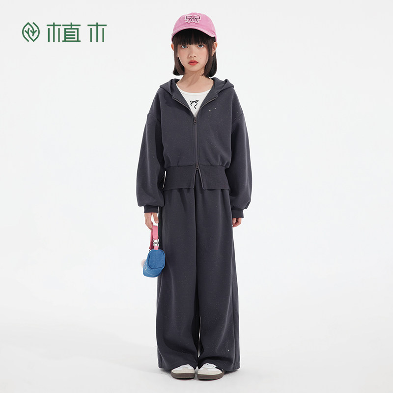 植木童装 儿童套装2025秋冬新款中大童卫衣阔腿裤套装女童套装