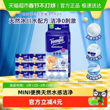 新品【黄油小熊湿厕纸】得宝黄油小熊联名迷你纯水湿纸巾
