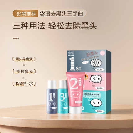 去黑头鼻贴小猪鼻膜黑头三部曲套装收缩毛孔男女可用T区面部护理