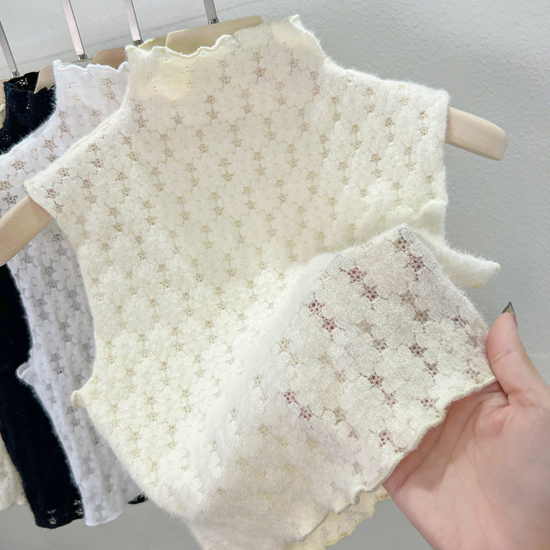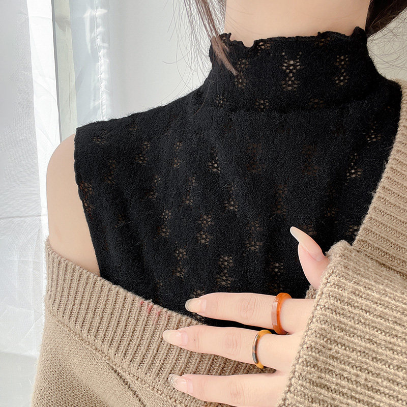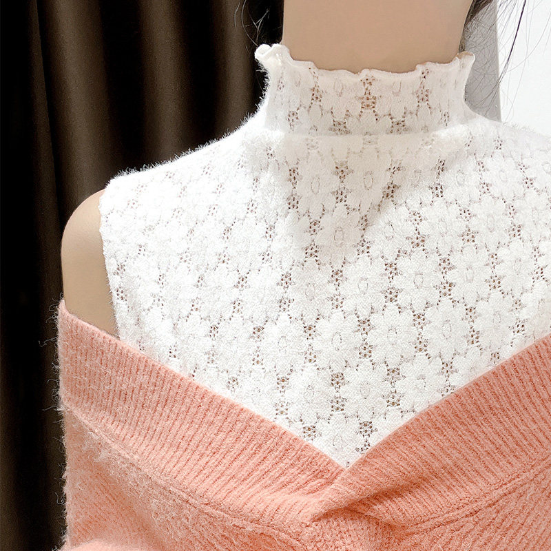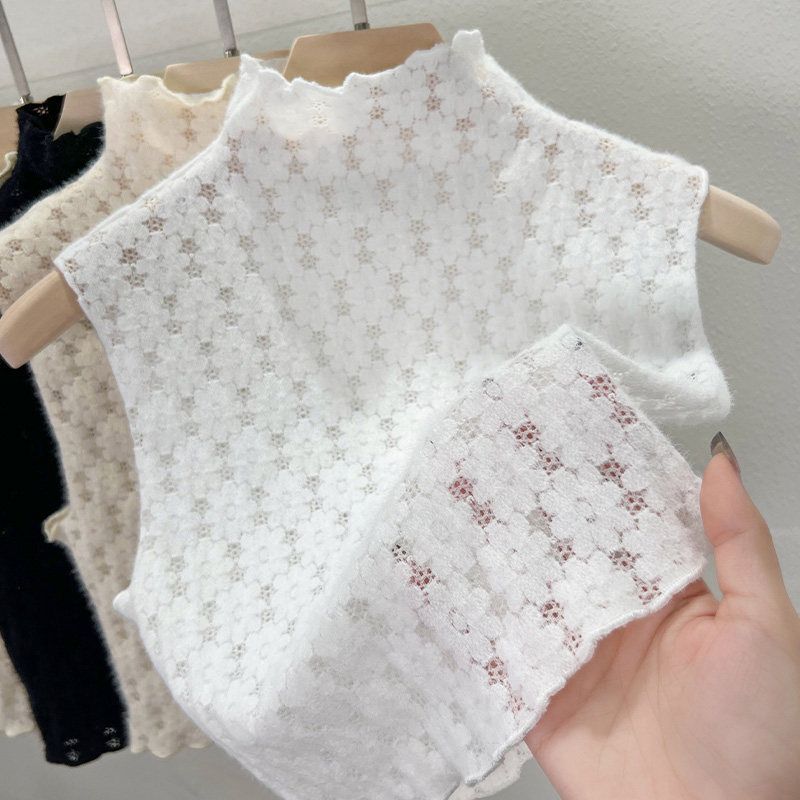 磨毛蕾丝假领子百搭女高档半高领背心打底衫秋冬配毛衣内搭木耳边