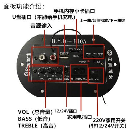 车载家用舞台低音炮功放板双用12v 220v6-8寸插卡汽车功放带遥控