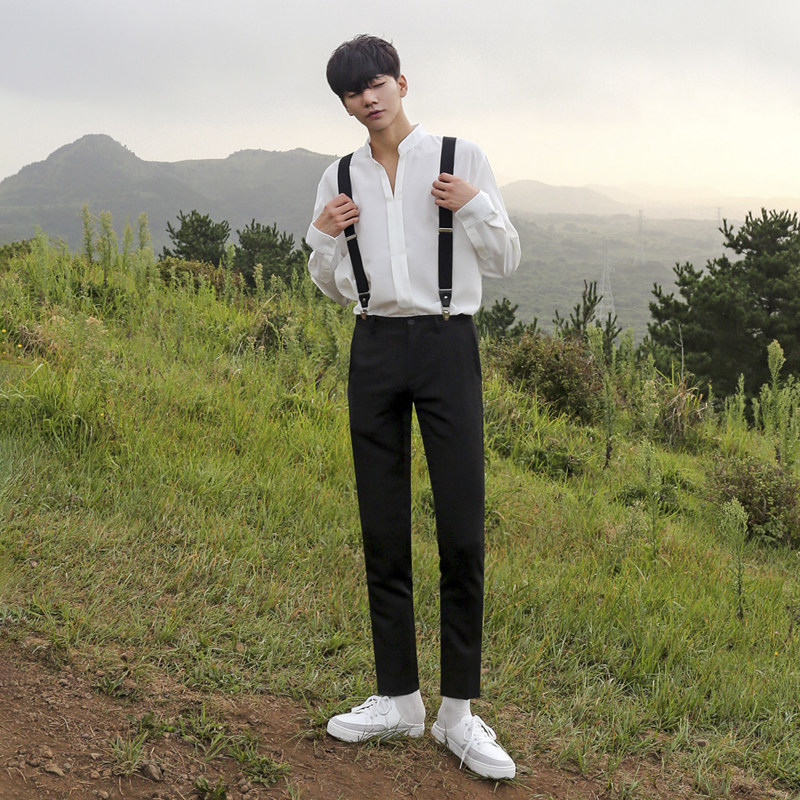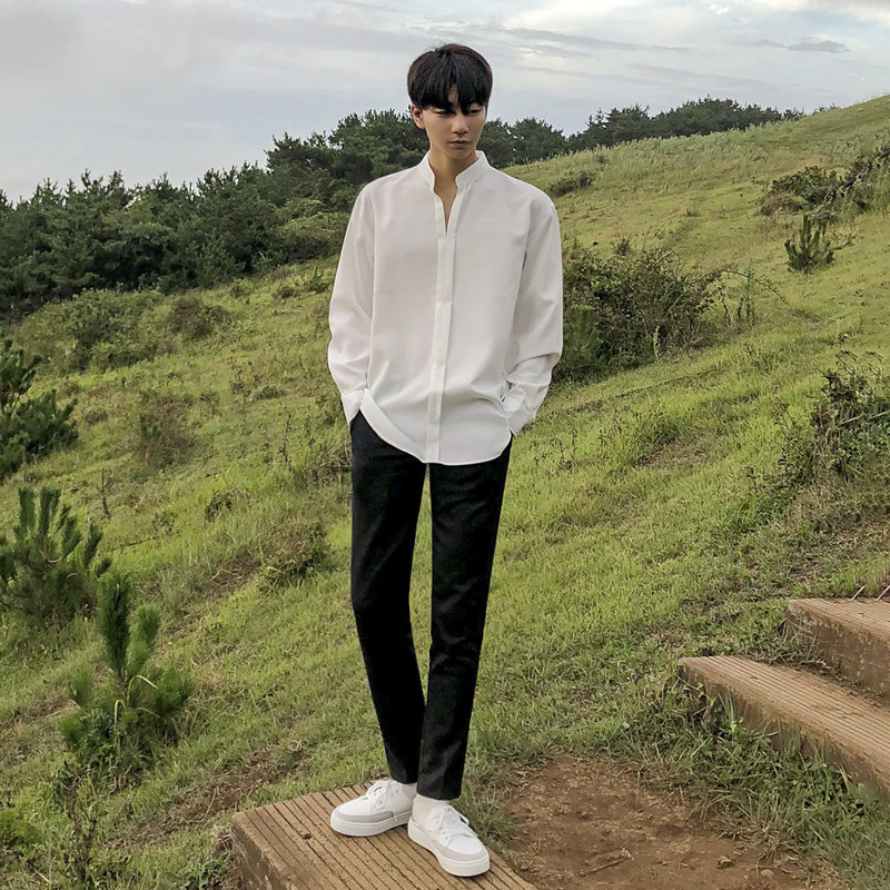 MRCYC秋季上衣韩系宽松V领长袖衬衫男高级潮流帅气丝滑垂感衬衣