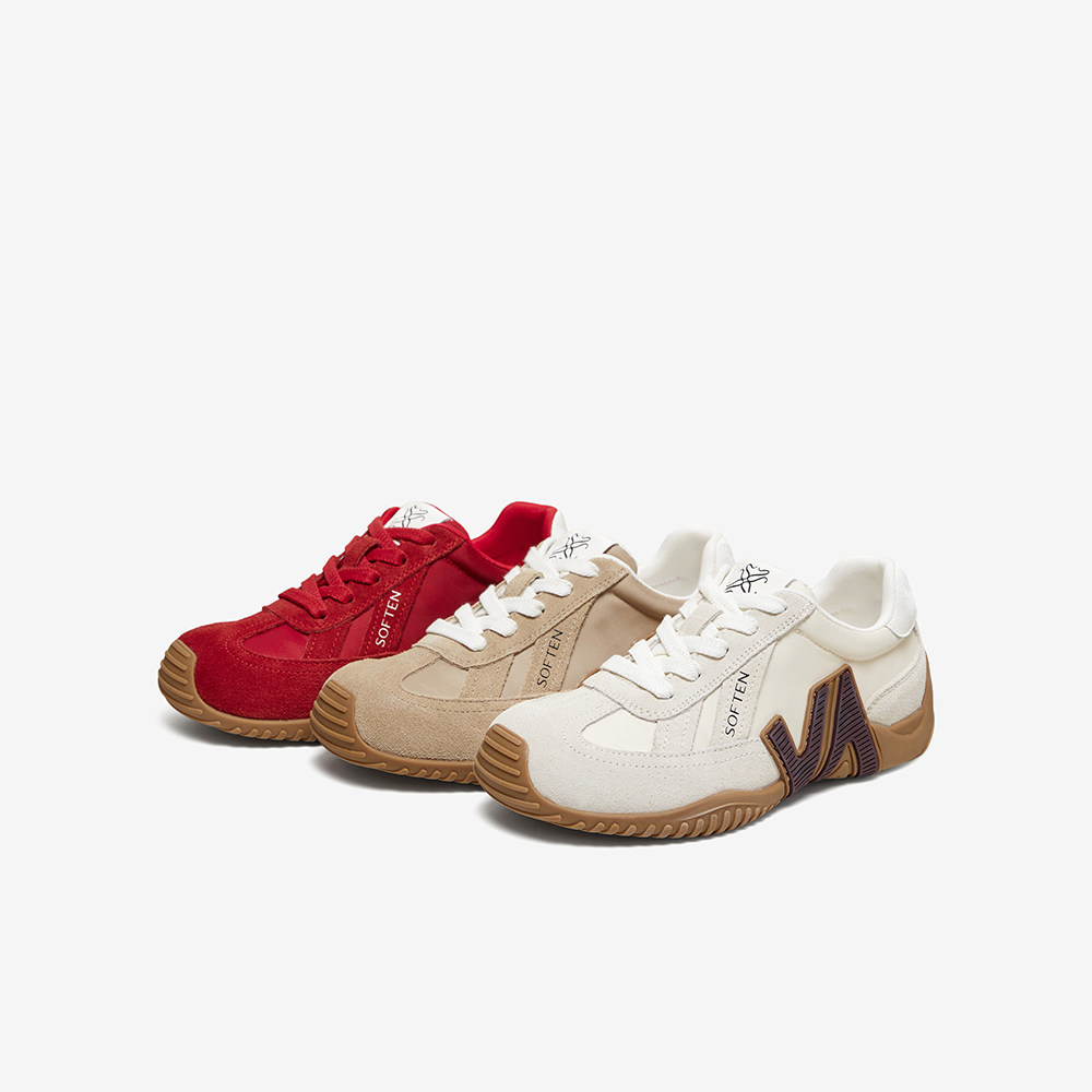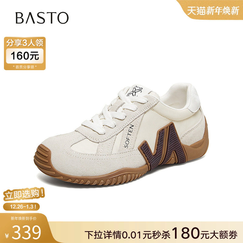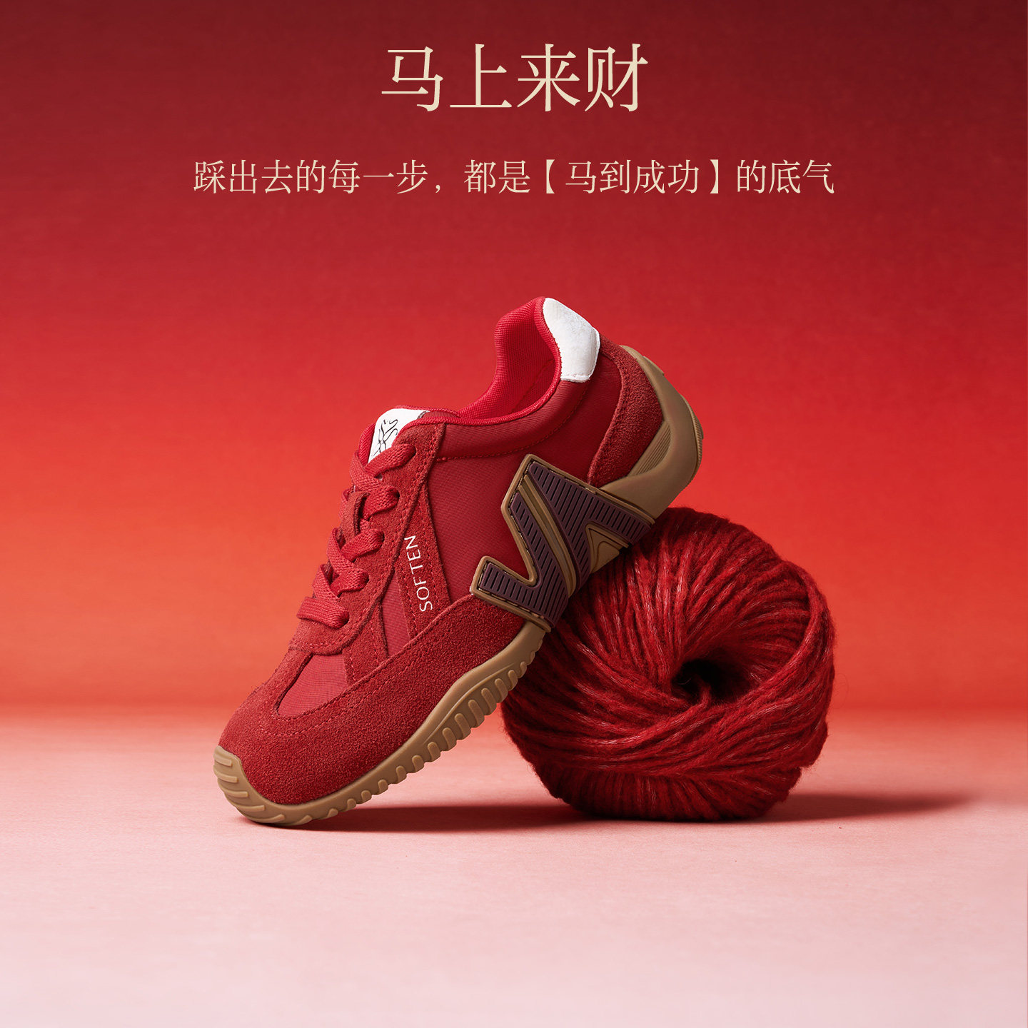 百思图26春新款真皮内增高红色德训鞋跑步鞋运动休闲女鞋B1203AM6