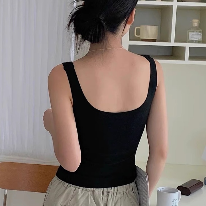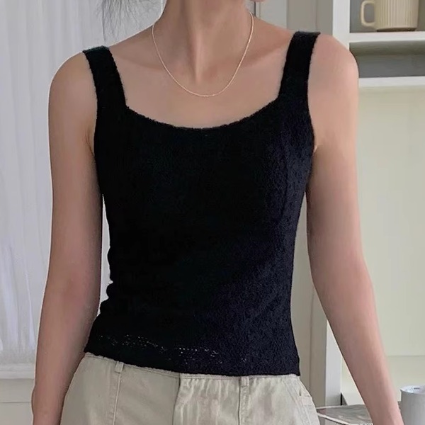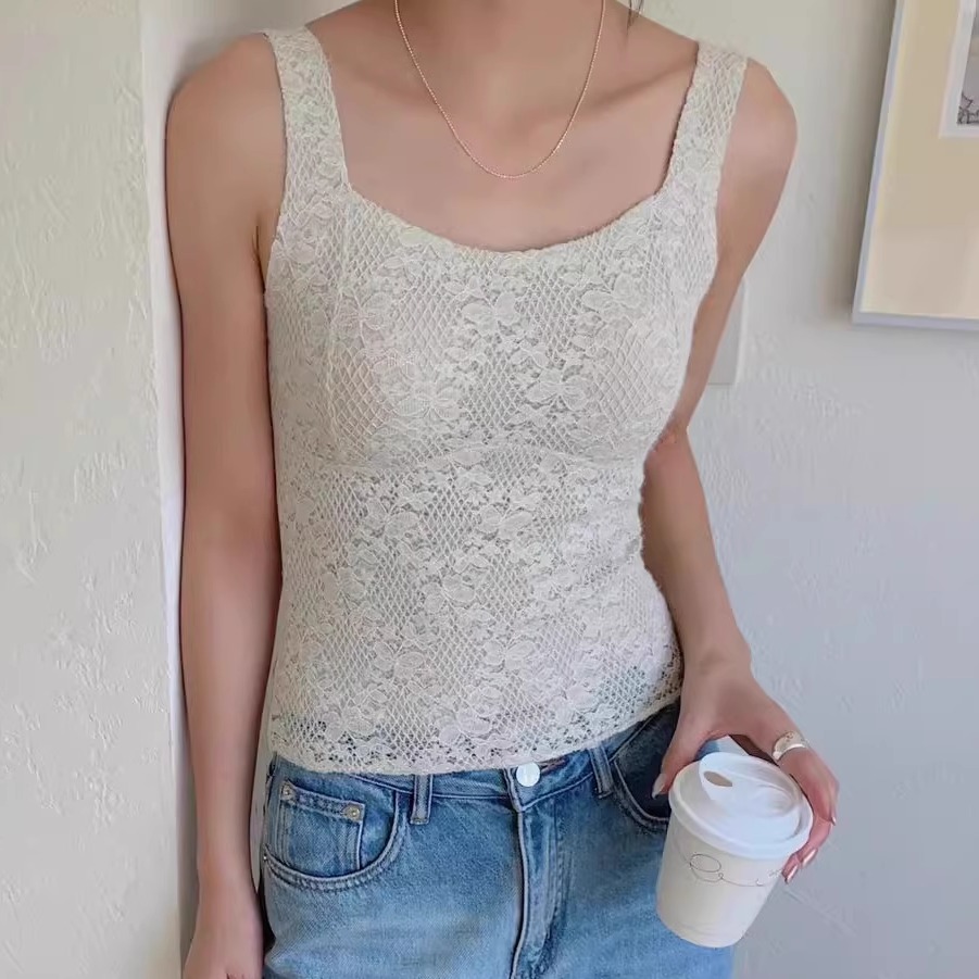 法式蕾丝吊带女秋冬磨毛保暖背心宽肩带胸垫一体式收副乳打底上衣