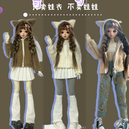 bjd四分摇粒绒外套上衣背心百褶裙牛仔裤套装4/1娃娃衣服46cm可穿