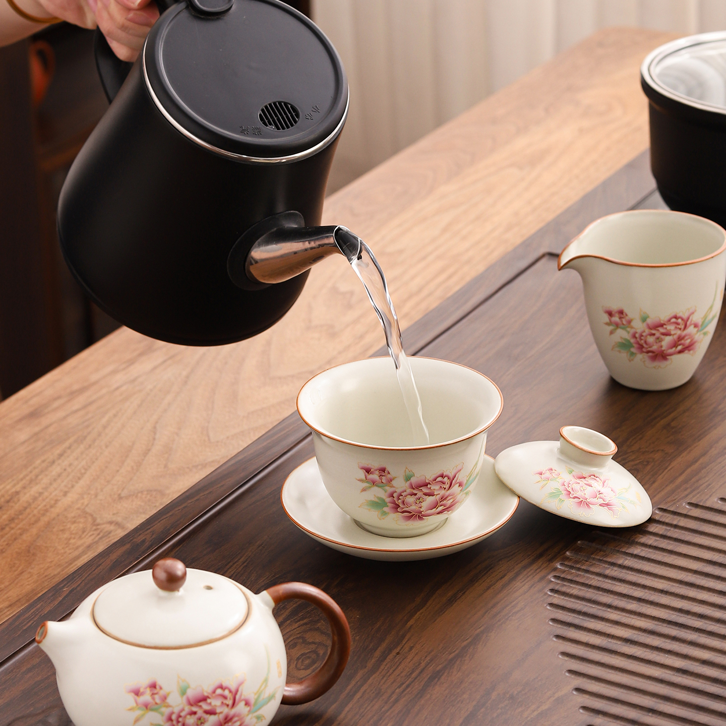 汝窑茶具套装家用高档陶瓷茶壶茶杯茶盘烧水一体茶盘整套2025新款