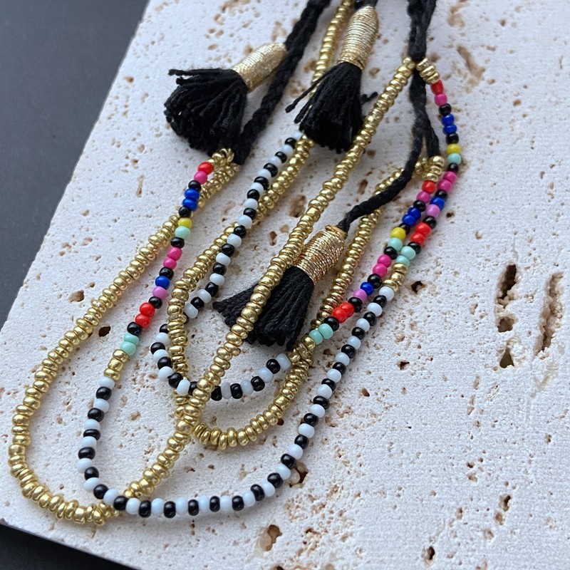 原单fossil/sd黑皮多层叠搭小彩珠手工波西米亚手链男女同款情侣