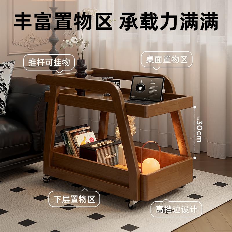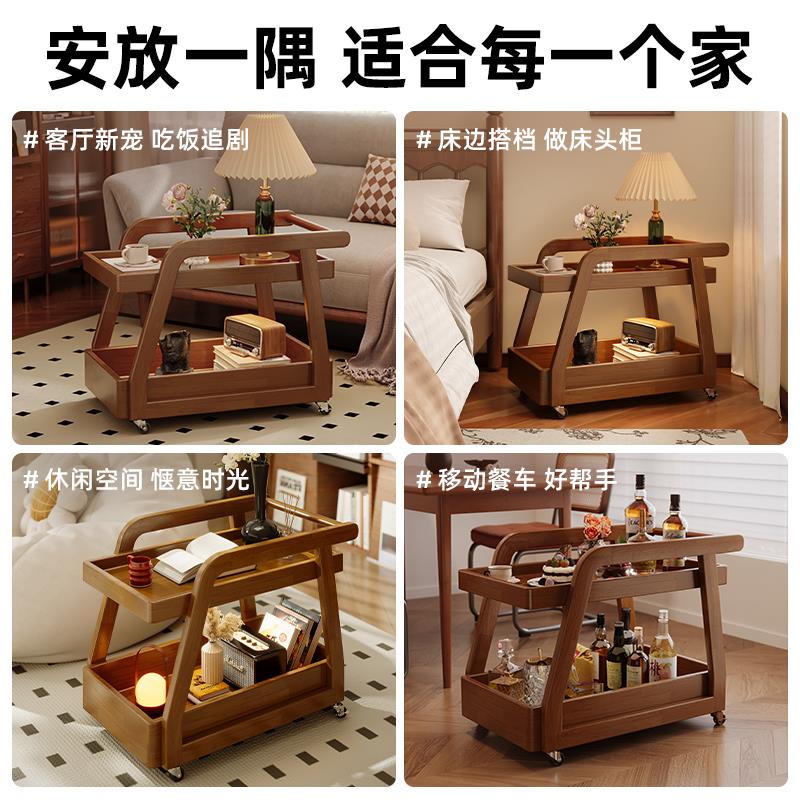 实木沙发边几可移动茶几带轮沙发侧边桌床头柜客厅中古零食小推车