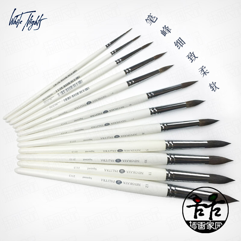进口俄罗斯白夜WhiteNights2113松鼠毛水彩笔勾线笔上色圆头画笔