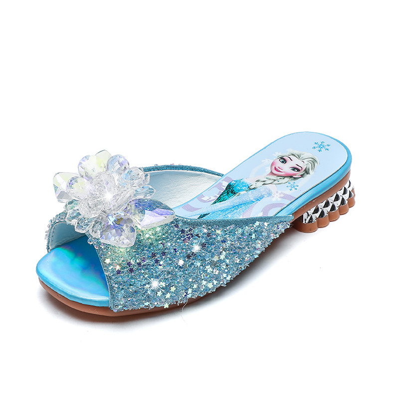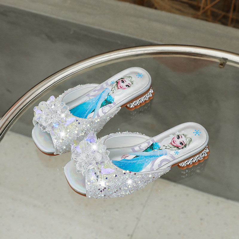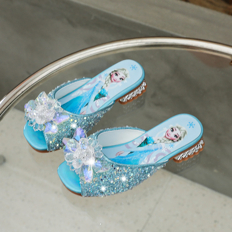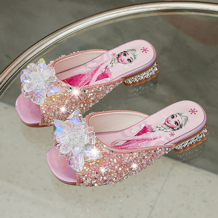爱莎女童拖鞋2025夏季新款儿童高跟软底宝宝时尚小公主水晶凉拖鞋