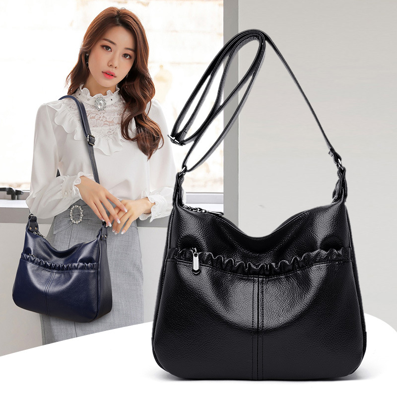 女包真皮包2023新款简约软皮中年妈妈荔枝纹女士单肩包休闲斜挎包