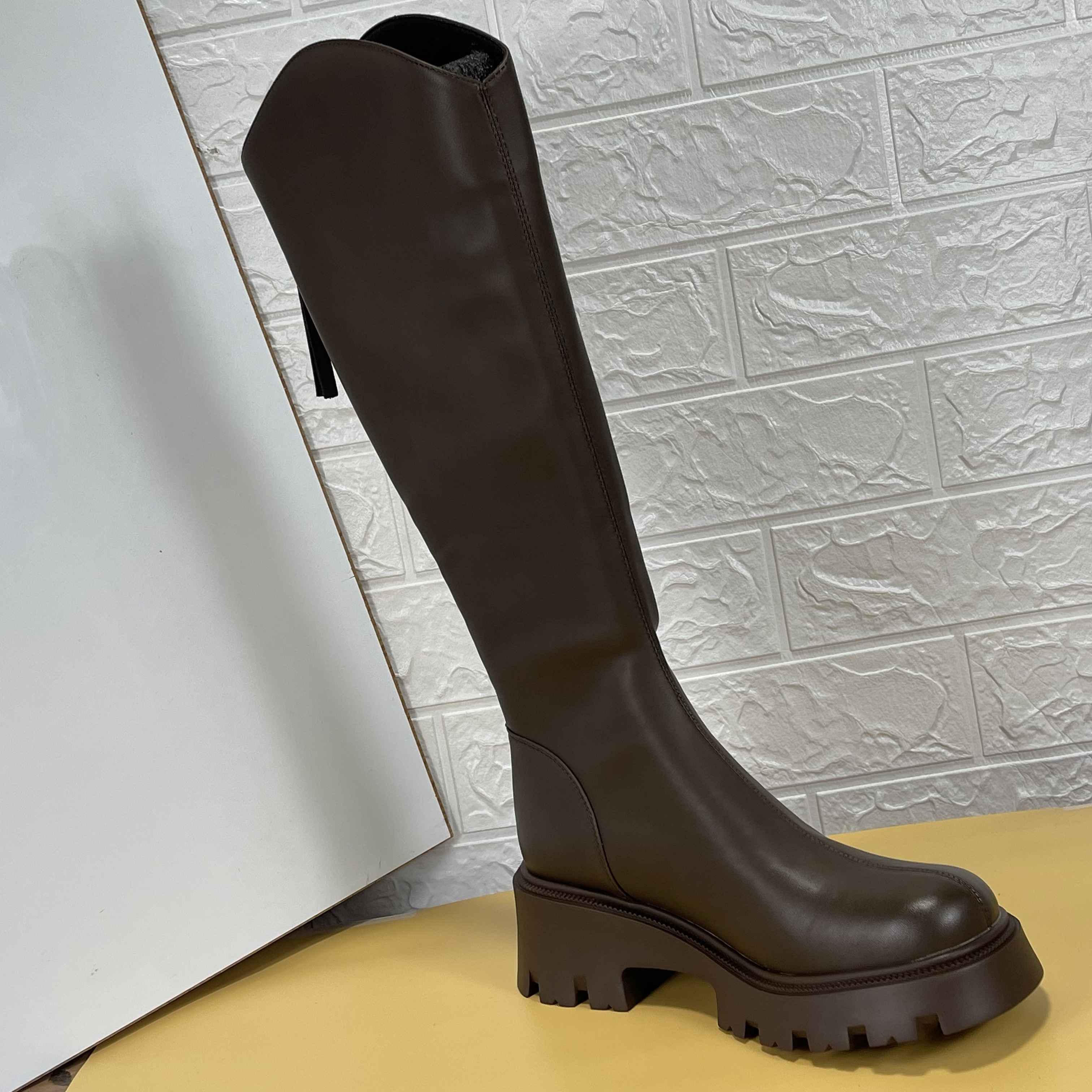 品牌撤柜真皮粗跟防滑骑士靴女撤柜冬季新款显瘦通勤高筒靴长筒靴