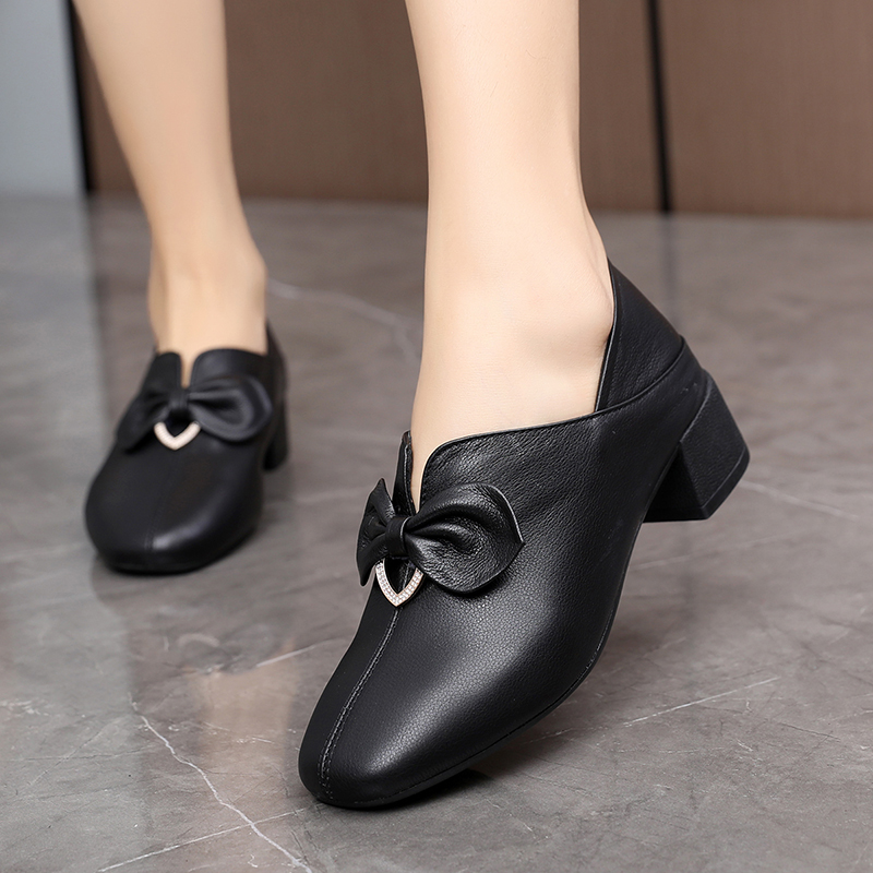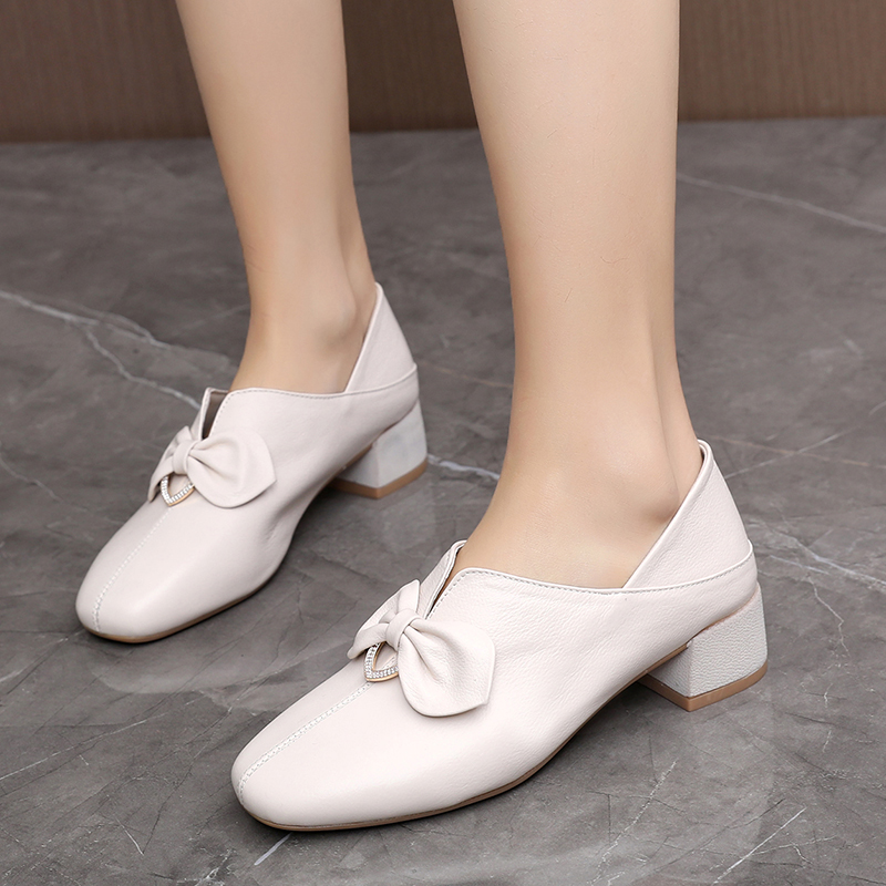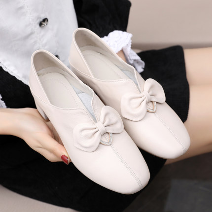 粗跟软皮鞋真皮软皮乐福鞋仙女