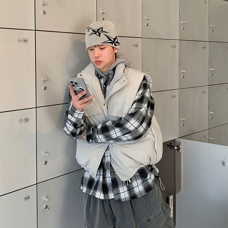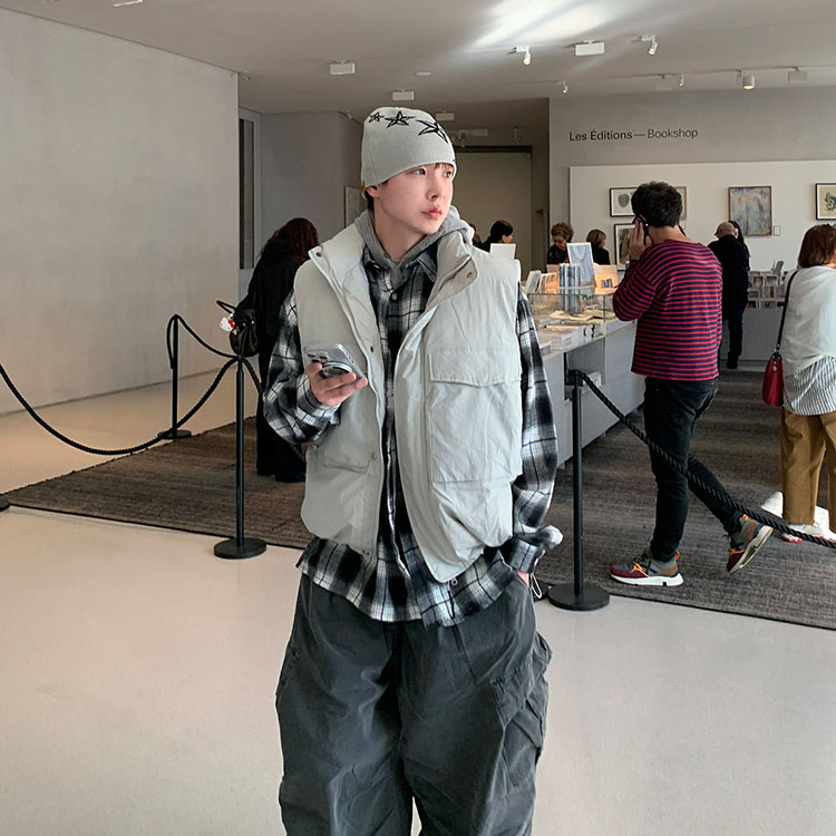 韩国东大门代购秋冬时尚高街重工大口袋工装机甲立领棉马甲男外套