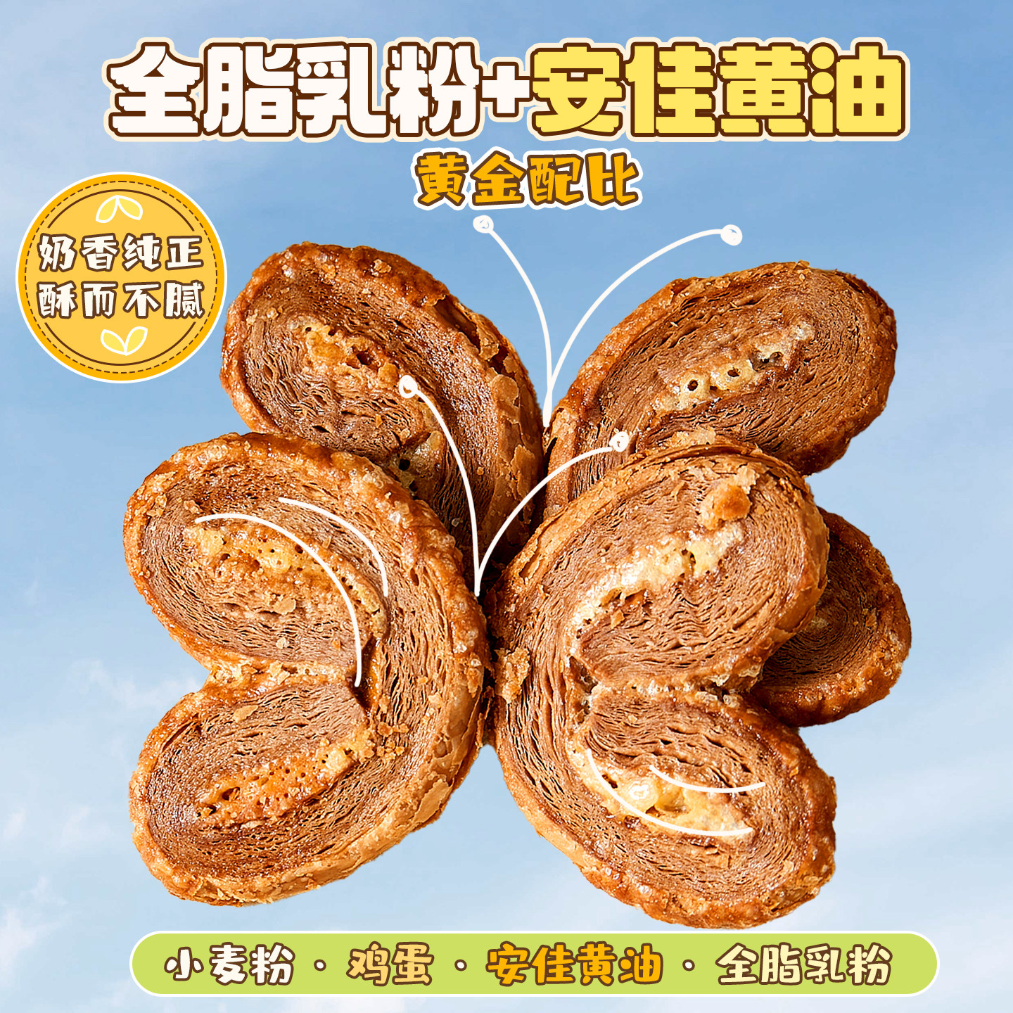 奶香浓厚!蝴蝶酥糕点网红千层酥马蹄酥解馋休闲好吃零食上海饼干
