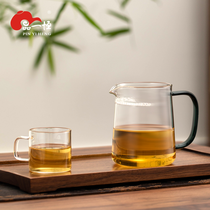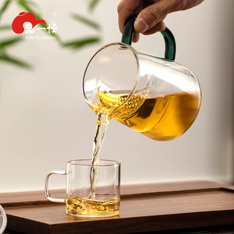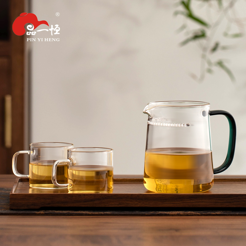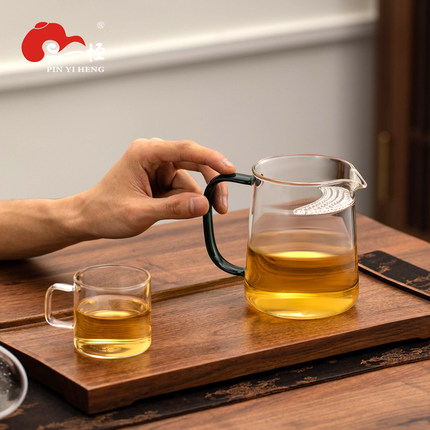 品一恒绿茶月牙杯玻璃杯耐高温加厚过滤茶一体分茶器泡茶杯公道杯