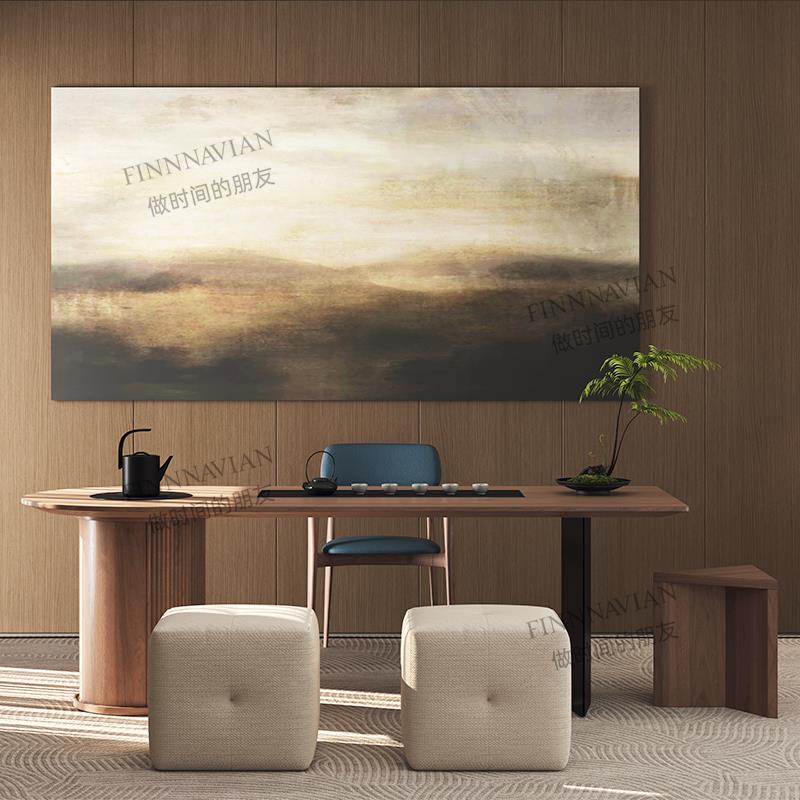 芬纳维亚 实木中式极简黑胡桃茶桌 中古橡木茶台(Ersa埃莎)