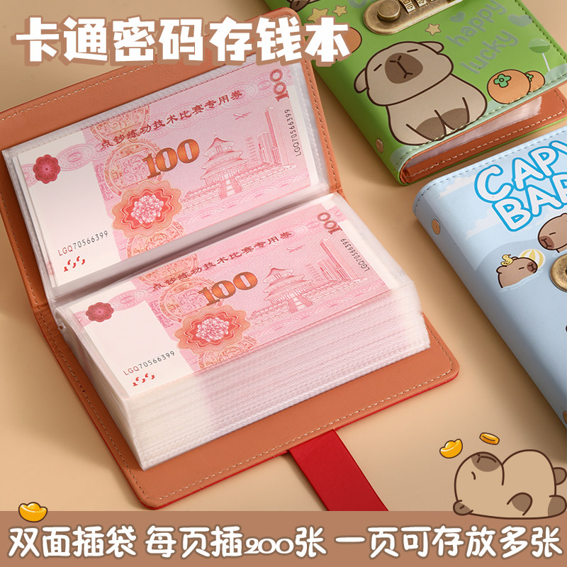 卡通密码锁存钱本男女通用大容量可放钱收纳册便携钱包