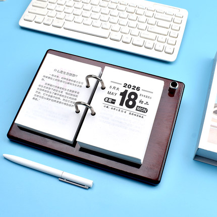 刻字定制2026年木质台历架商务日历板简约桌面每天一页记事台历芯