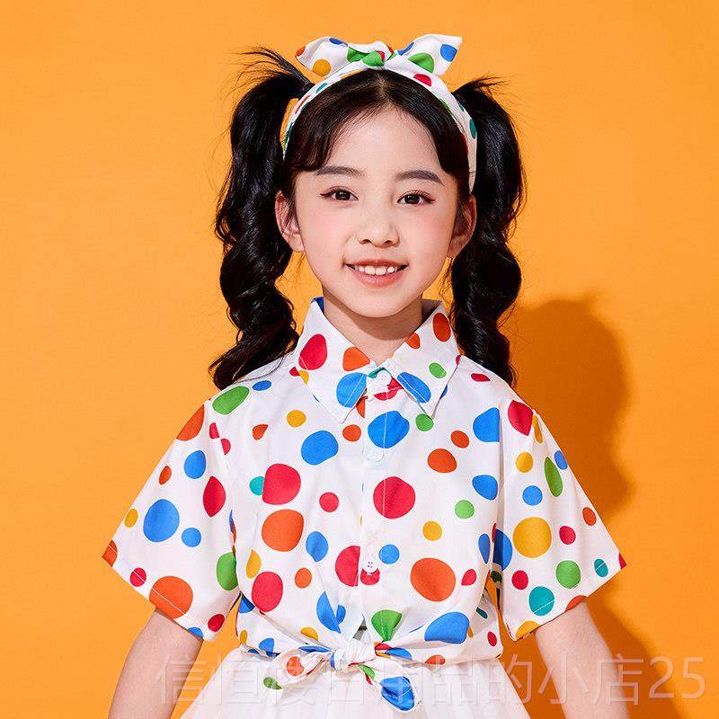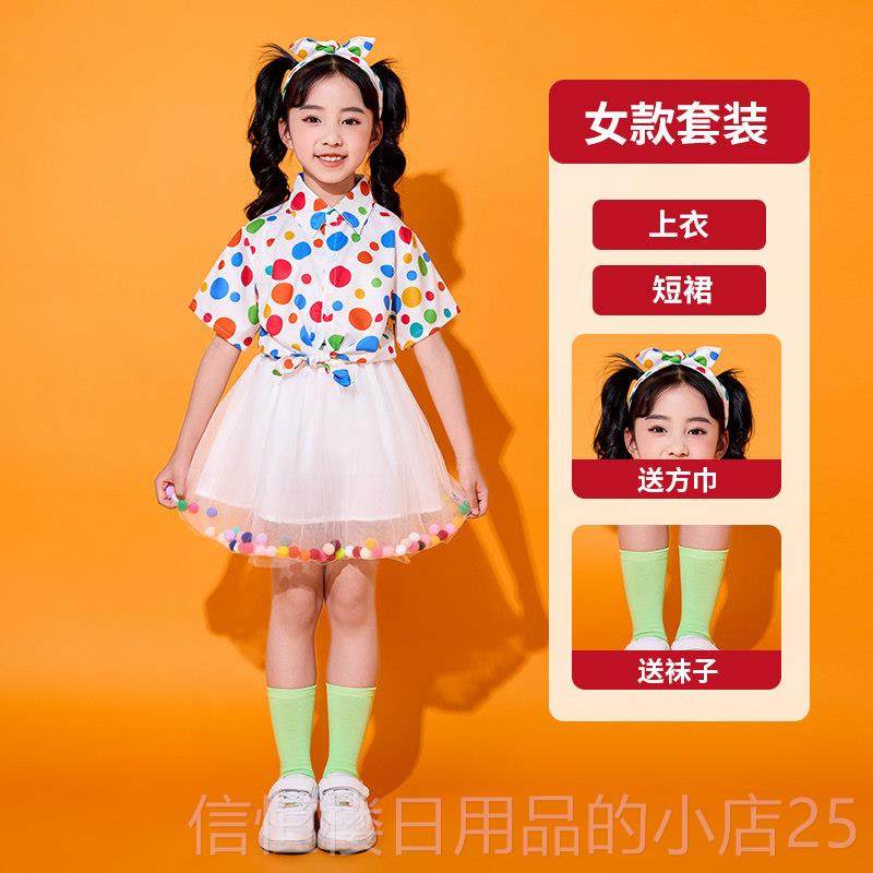 高档夏季儿童啦队演服童幼儿园小学生运动会儿节出舞蹈啦班服七彩