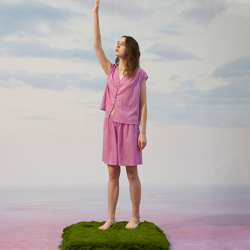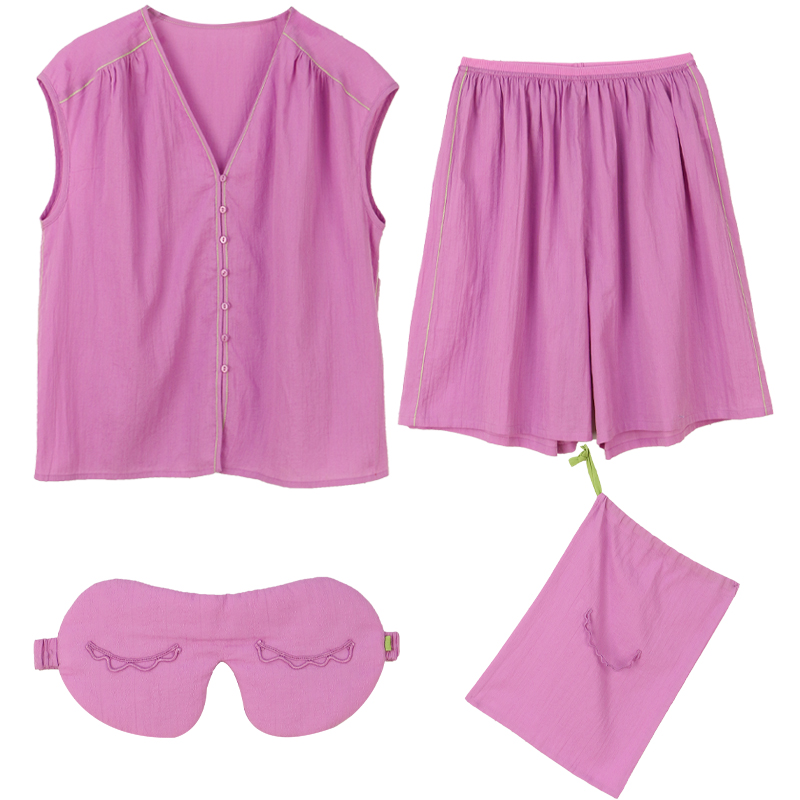 朵朵可可睡衣女夏季新款纯棉超薄款V领甜美无袖短裤家居服套装