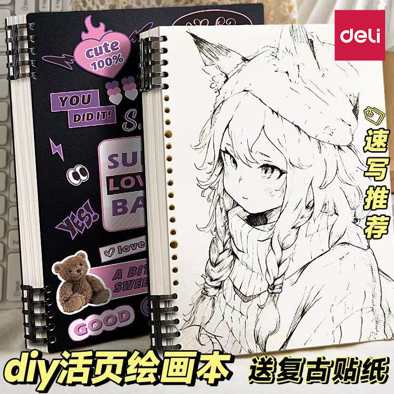 得力16K速写图画本可拆卸空白笔记本本子a5活页本32K绘画本A4画画本B5儿童小学生初中生美术专用素描本手账本