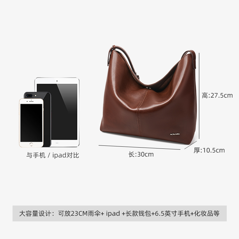 奥康托特包2025新款女包hobo通勤包植鞣牛皮单肩包女式大容量包包