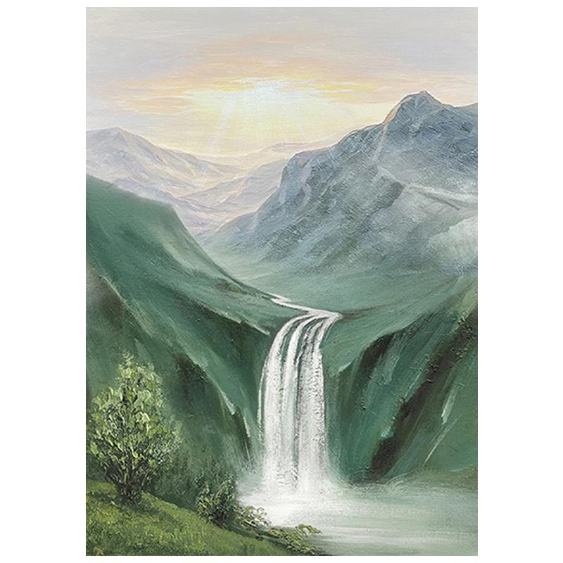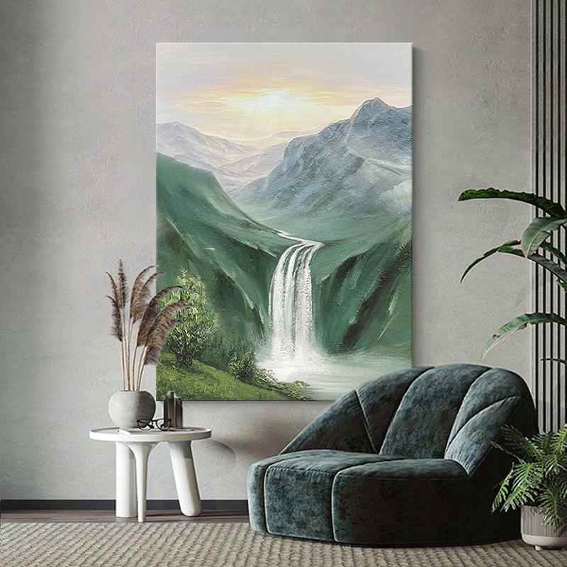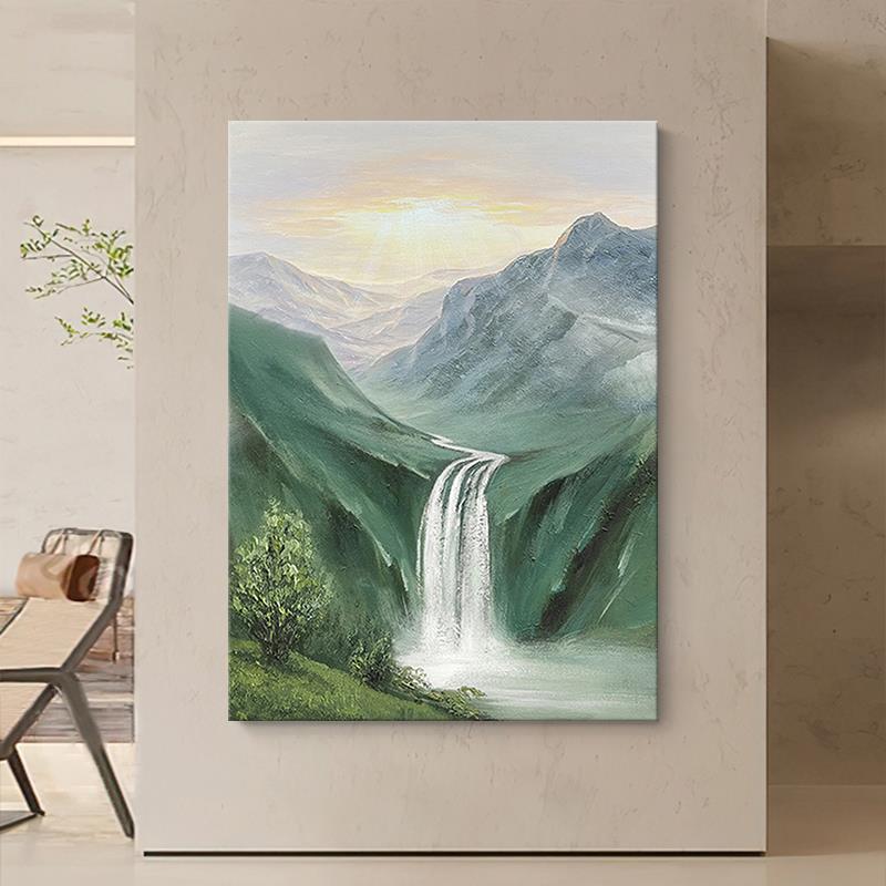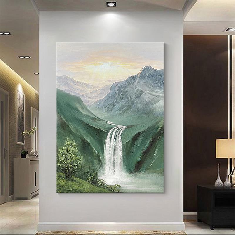 高山流水生财晶瓷画旭日东升瀑布客厅装饰画聚宝盆入户玄关挂画