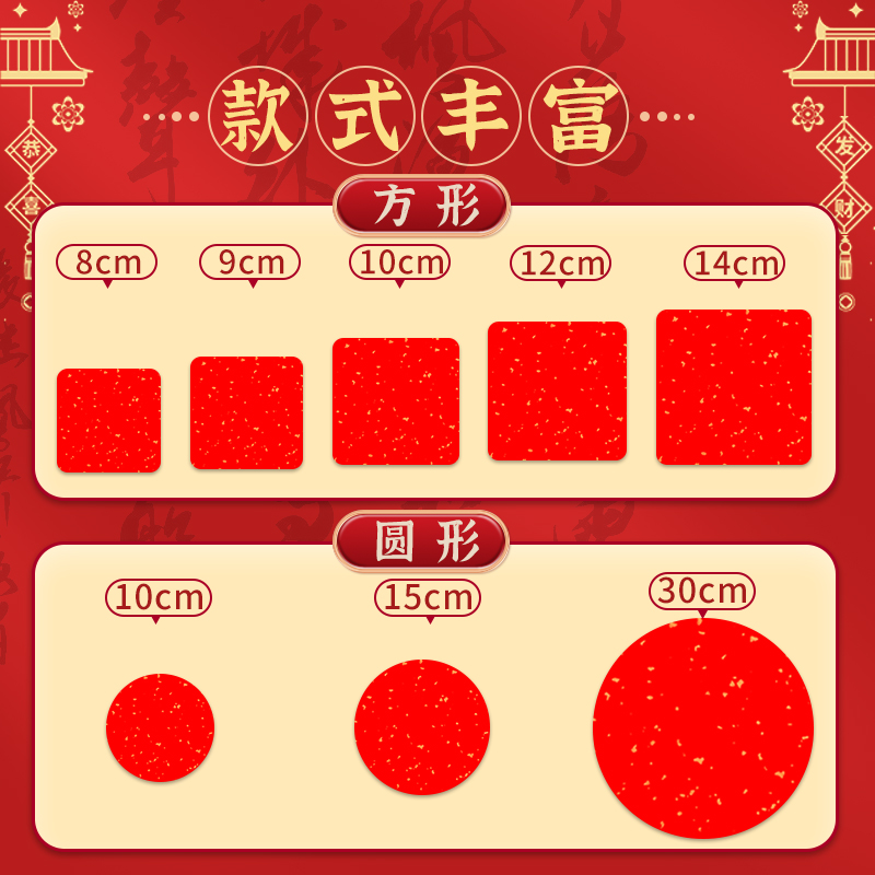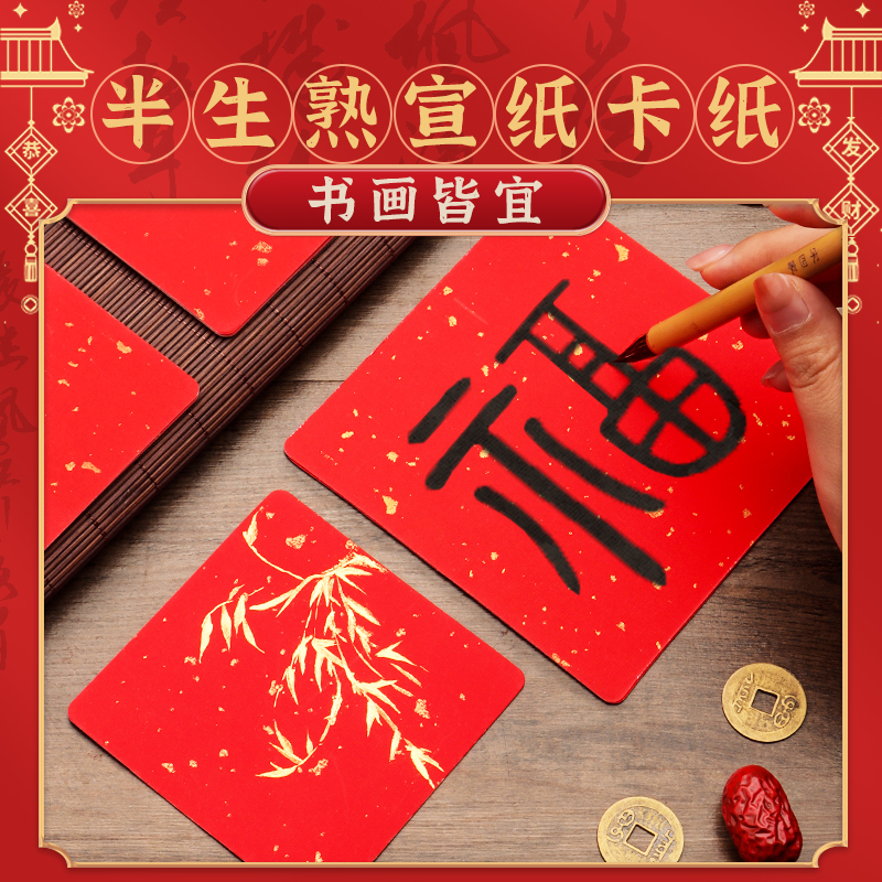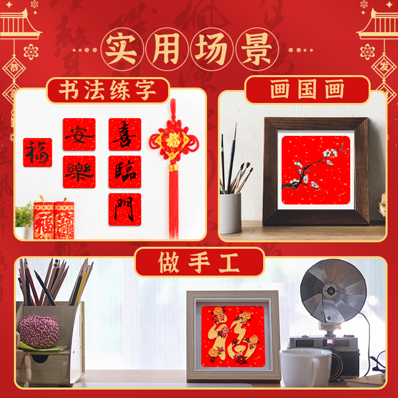 万年红洒金宣纸卡纸小尺寸福字专用小号半生熟作品练字卡片书法文化墙方块文创正方形半熟加厚用纸福卡挂件